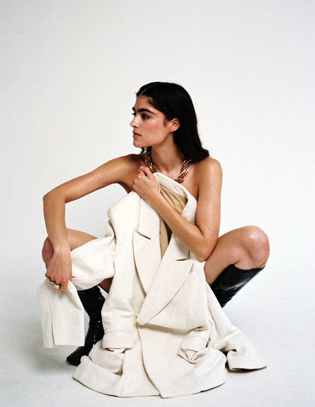 Suit Jacket: Lea Nyland Studio Necklace: Zara Rings: Other Stories + ‘Bleeding signet’ by Connor Joseph Shoes: Rotate x Manu Atelier