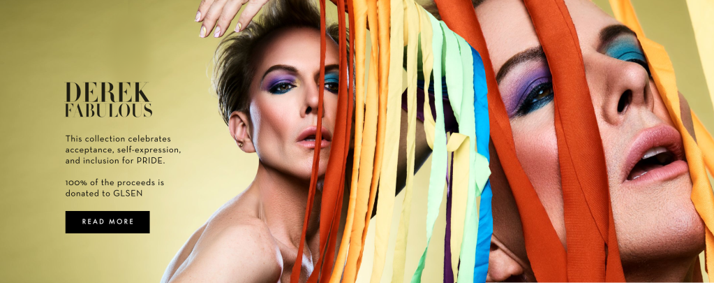 I had a very dear friend named Molly Heintz who was working with a wonderful organization called Bottomless Closet in New York where I was living at the time. Bottomless Closet is an organization that works with women in need to help them enter the workforce. Many of the women are homeless or just transitioning back into working, in the interview process or just needing a little help. My friend had taken me to lunch to tell me about it but also to consult with me about my life and where I was taking my career, knowing I was in distress but also in need of an outlet I could channel all I had to give. That was the birth of DEREK FABULOUS, which meant, help, teach, inspire, love and have fun. Little did I know this character and program name would not only be the catalyst of good but it also became a career moniker and a key to healing my heart through my work with the organization. All those years ago DEREK FABULOUS led me down a path of healing and good and now I hope my new collaboration with Face Stockholm and our Pride makeup collection does the same with our partnership with GLSEN, an organization started by educators that protects LGBTQ+ children in schools across America. Every dollar sold in my new collection is donated back to GLSEN so the children of this generation will not have to suffer the same way I did.