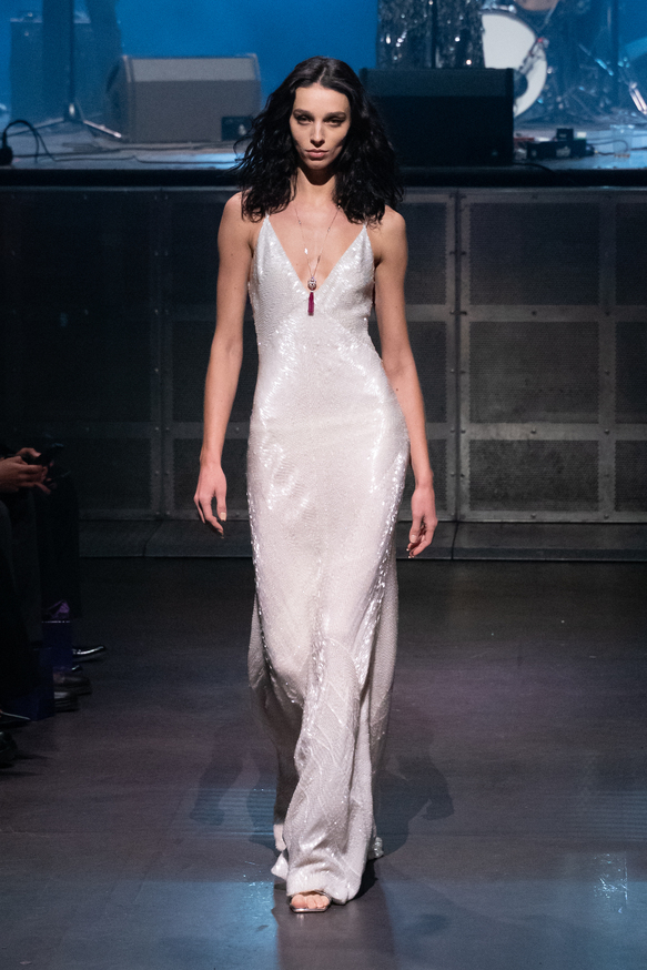 “We love rock and roll and it’s (Breanna Barbara) a mix of blues, western, psychedelic and wehn we heard her music it just hit. We loved it, it felt right, and I think Anna nad I have learned to incorporate the things that we love. Webster Hall, we walk past this place every day on our morning walk, and seeing it and dreaming about it, I’ve always dreamed of playing here. I’m an amateur musician, so.. If I cant play here, I thought, let’s do a fashion show here.” – Anthony Cucculleli