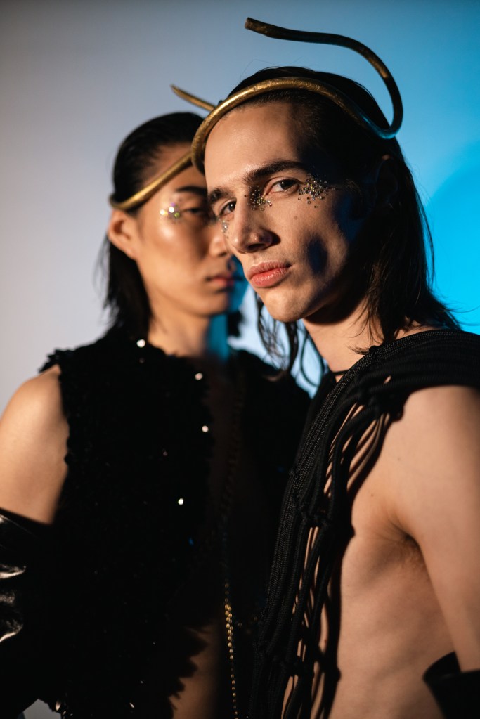 Strass collar and gloves: Archivio La Couture @archivio.lacoutureShirts, hat and black collar: Veronica Calarco @veronicacalarco