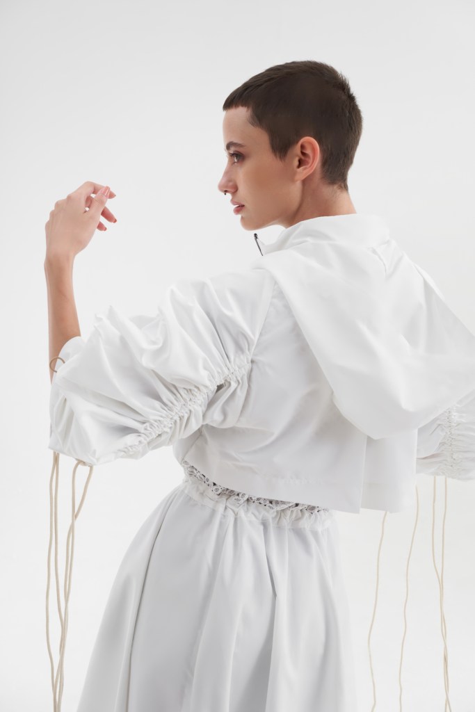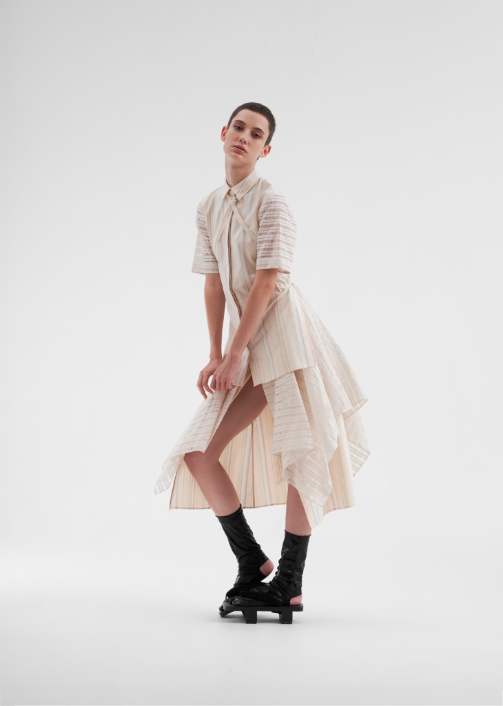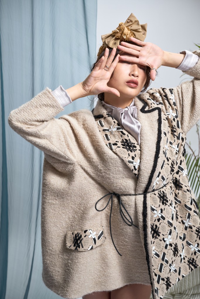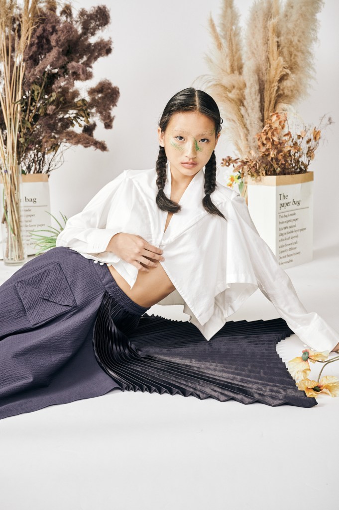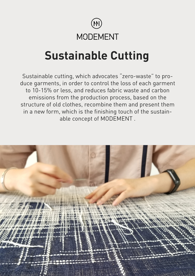 Functionality is liberating. Sustainability is the future. MODEMENT adopts a zero-waste approach to creation, and our signature minimalistic, gender-neutral designs are made with natural materials, such as jacquard silk organza, cotton pleated and hand-woven fabric for this season. We also embrace the poetic scene of falling of “Usuzumi no Sakura / 淡墨櫻”, mixing with embroidery and weaving skill to create brand new details by using leftover materials. Modernize traditional crafts and express them in a new format. As a bridge between history and present, art and body, time and human.