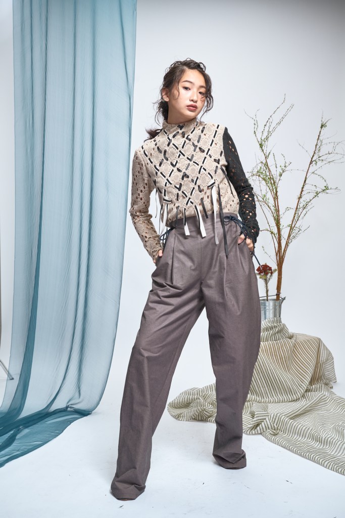 Its beautiful colour changes reflected in the colour with Japanese heritage influences like straight silhouette and the touch of kimono details. The collection brings peaceful mood and subtle details to Spring Summer 2023, expressing a freshly new season as a new born after untied from pandemic.