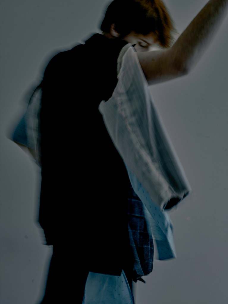 The palette is dark, strangled, limited, midnight blue and veiled sky blue.
