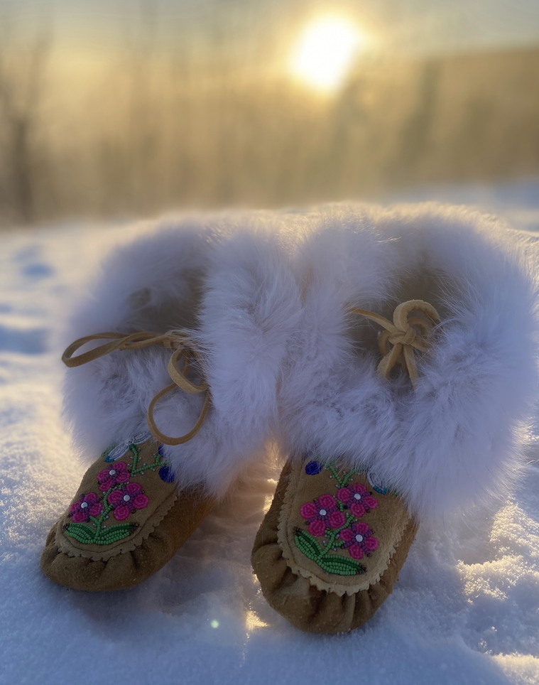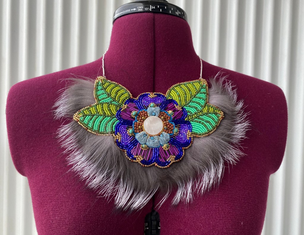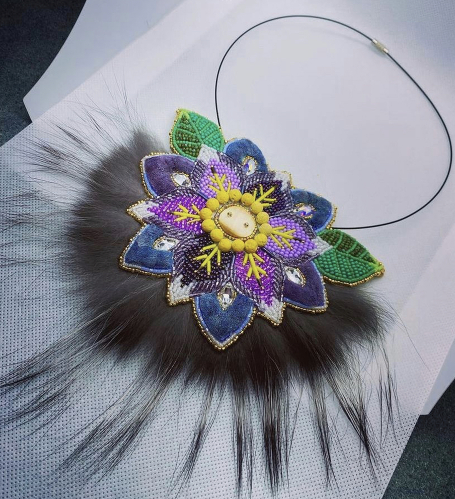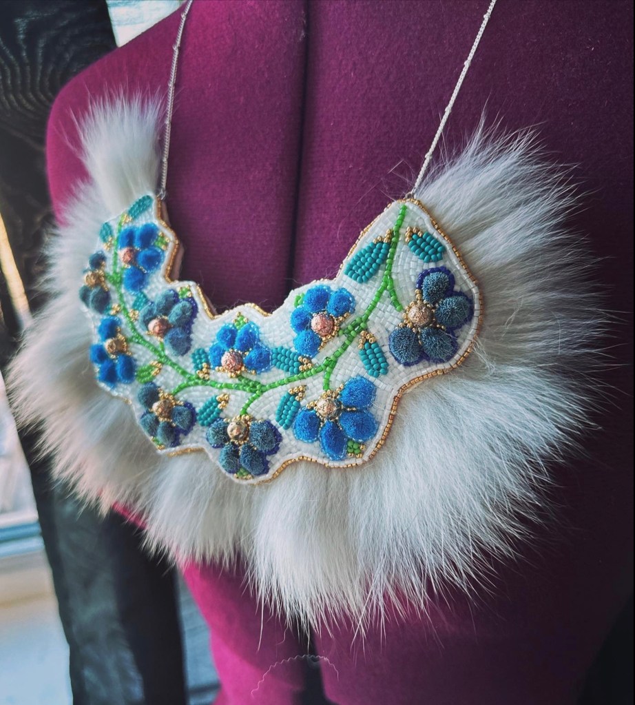 Natasha had started Kaska Dena Designs as a hobby seven years ago while she had attended college to upgrade her skills to become a nurse. During this time of life, she was in a dark spot of her life, she didn’t know where she was going or what her purpose was in life. She was fighting addictions at the time, a year had passed by, then two years and little did she know, her creations and Dena skills were healing me. So, when she had realized this – she stuck it out and continued creating. Her sewing skills that were taught from her elders, who are no longer alive today, her grandparents who I cherish and admire are no longer alive.
