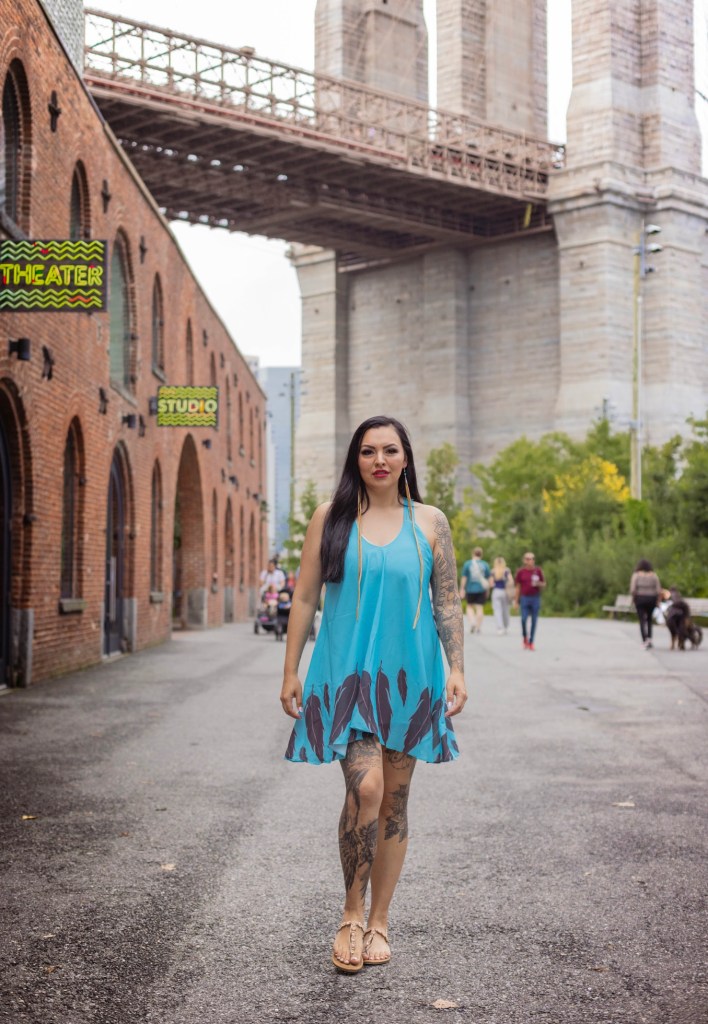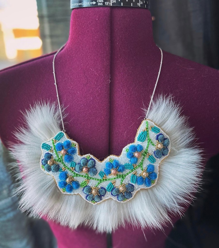 ‘’I’m here carrying on their legacy and passing onto the next generation and showing them how important it is to keep our Dena ways alive and most importantly my daughter, she can also pass onto her children. My designs are traditionally handmade that are luxurious modernized – contemporary clothing and jewelry.’’