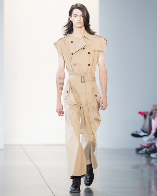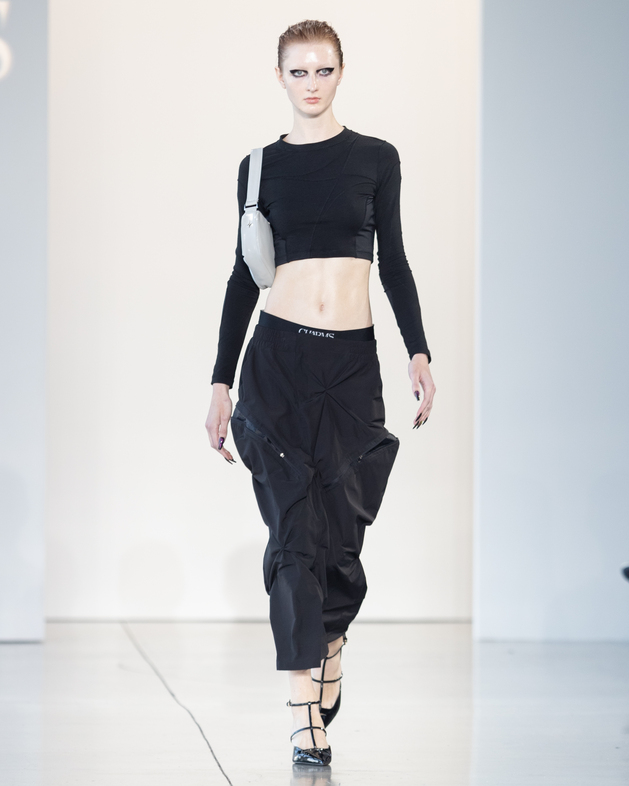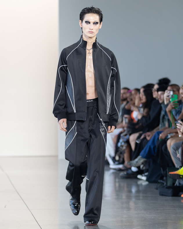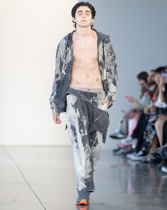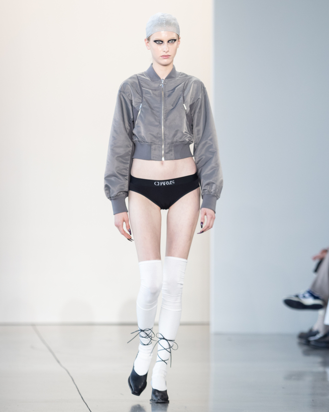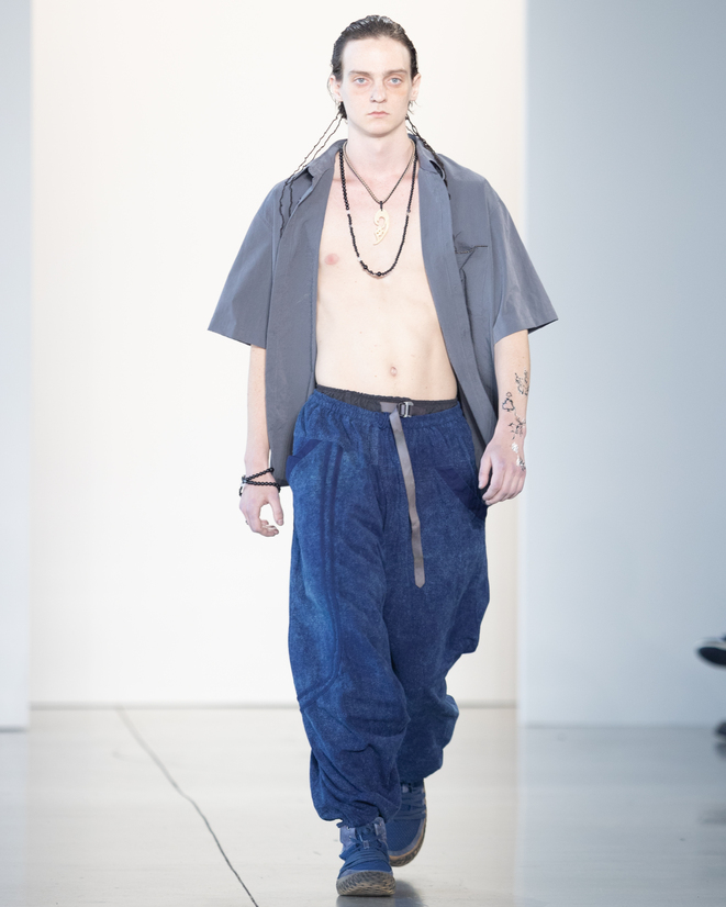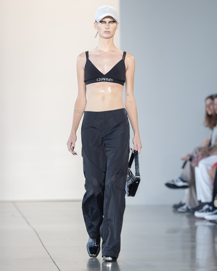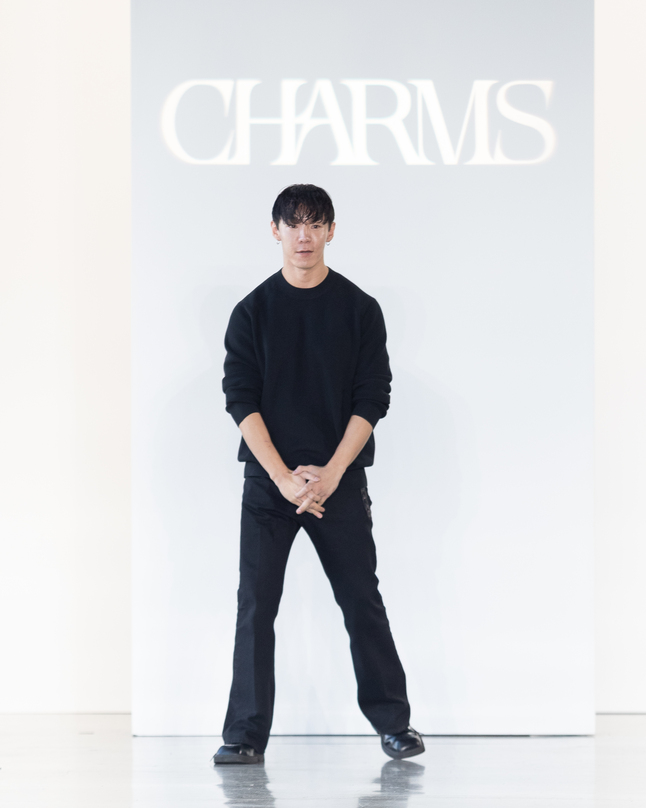 The themes and inspirations for these three collections range from family and childhood to the Earth and human nature to karma, chakras, and spiritual wellness. MMAM’s collection, by designer Hyun Park, emphasizes uninhibited play and creative curiosity, with a line that is notably unisex and sizeless. Designers Jenny Kim and Haeun Lee of Kimmy.J meditate on the importance of rest and realignment in their line, which melds urban wear and athletic wear for practicality and style. Yohan Kang of CHARM’s has created a collection that is at once anachronistic and futuristic, inspired by sonder and the vastness and cruelty of the Earth.