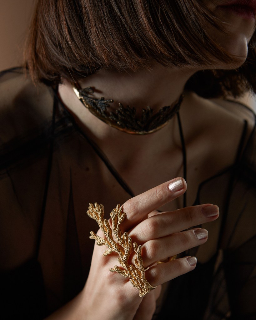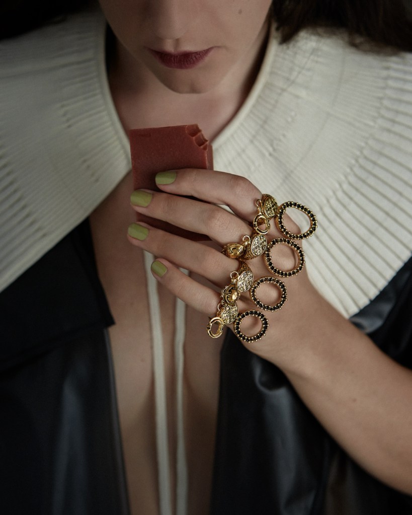 I’m a private person and because of the creative process I follow – which is tailored to what I selfishly need from it – these jewels are the physical representation of my emotions, experiences and beliefs. Putting them out there was something that I feared because I was exposing something very intimate and personal for everyone to see and judge. It took me a while before I felt comfortable allowing myself to be so vulnerable, I don’t think I ever will be completely, to be honest. But when I do and the public loves my jewels and perceives what I convey through them, this becomes a unique connection, a dialogue, that would otherwise never be possible.