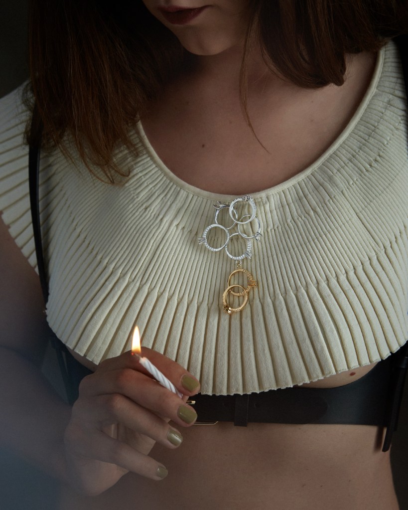 Amàlgama is more than a mere name; it is a concept, a fusion of elements, a blend of influences. Drawing upon the alchemical symbolism of metal amalgamation, Giorgia infuses each creation with a sense of unity and transformation. Her jewelry reflects a bold juxtaposition of precise design and instinctual intuition, translating ethereal thoughts and sensations into tangible forms.