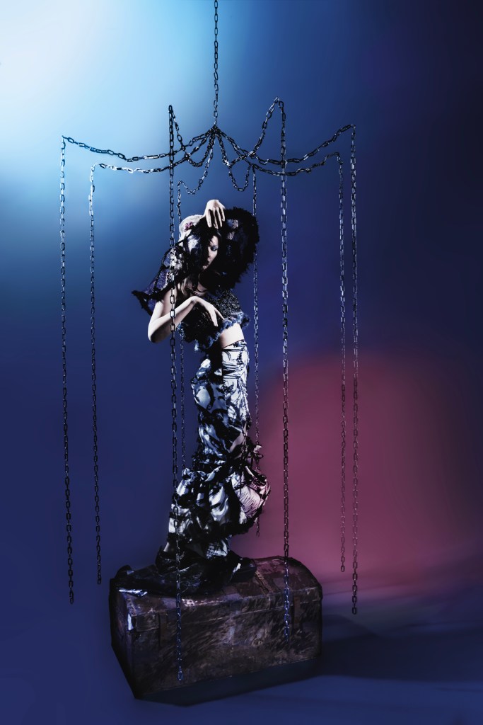 London-based designer MHW presents Orpheus, a collection that delves into the emotional journey of trauma survivors. Inspired by Rainer Maria Rilke’s poem, MHW blends prints, crochet, and embroidery to convey themes of suffering, struggle, and healing. Through emotionally durable design, she empowers women to navigate their mental journey with resilience and grace.