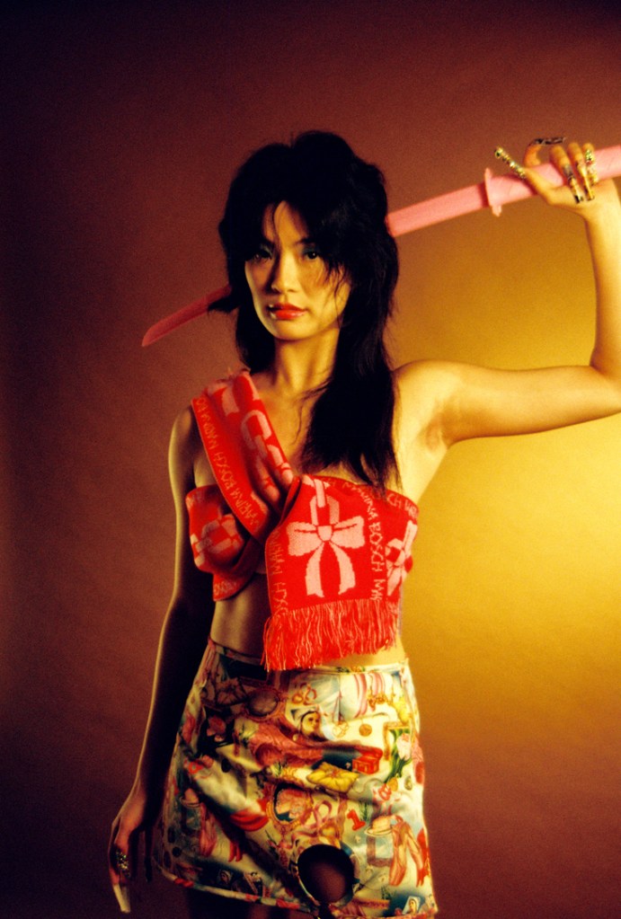 ”Lately I have been immersed in Japanese cinema from the turn of the last century and it has been a major energy boost to meet these heroines, aggressive and sexy, who accomplish missions and fall in love at the same time. I wanted to recreate some of this scenario in my studio. A pink javelin, gorgeous nails, dresses and guns. Fantasizing about this universe, I shot the following “characters” and stories – posters inspired by imaginary films that I would certainly love to watch and make.” – Cinthya Cabrera, Director & Photographer