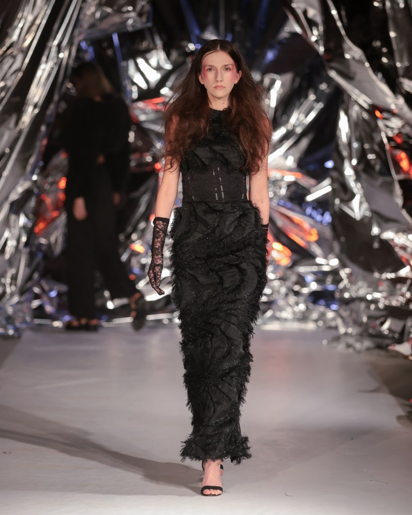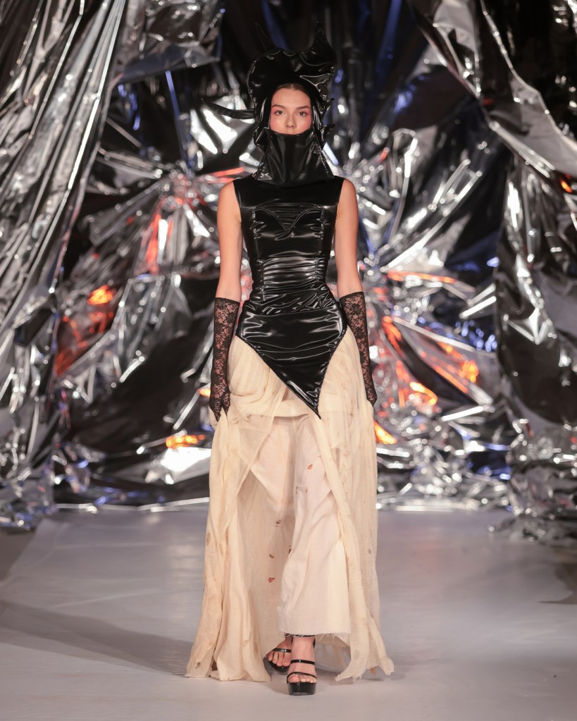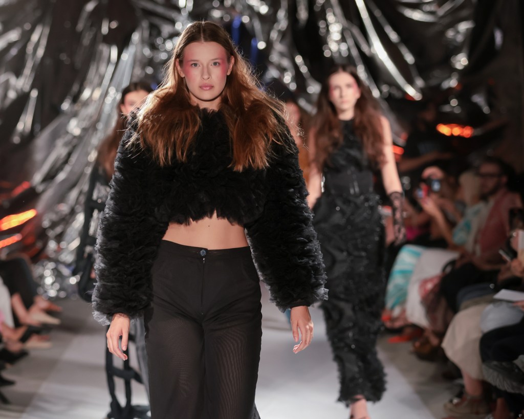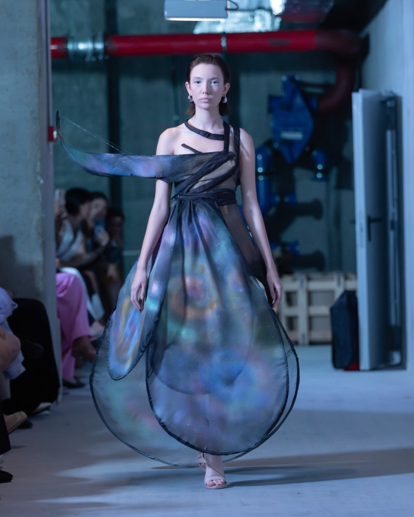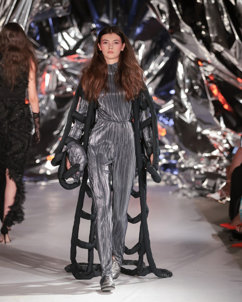 Kicking off the unfolding extravaganza with a stirring social agenda, the fashion shows not only dazzle but also shed light on the intricate socio-political narratives that infuse the ethos of the industry. Leading this charge was the Ukrainian Fashion Education Group, showcasing collections borne out of the crucible of wartime struggles, aimed at capturing the audience’s hearts and minds with their unique narratives. The ambitious choice of venue—a bunker nestled beneath Promenada Sibiu—will serve as an evocative backdrop, amplifying the emotional resonance of these poignant creations. Ukrainian Fashion Education Group is the biggest Ukrainian educational institution for fashion experts, and it has more than 100 courses, lectures, workshops, and webinars. We provide students with in-depth knowledge and necessary tools for fashion product creation — from ideas implementation to effective brand promotion in the global market. We are participating in Feeric Fashion Week for the second time, showcasing new work by our students titled «Existence»: ‘’ We are mastering the highest degree of being instead of surviving. UFEG’s students continue to draw inspiration from the deepest matters through the most challenging times. The future, love and nature, our roots, and the passage of time are exactly what our designers thought about when creating a catwalk show. We carry the wisdom of many generations and boldly look forward. UFEG shows the world the true creator’s power. Fabrics: organza, satin, velvet, suit cloth, mikado, chiffon, polished cotton, knit fabric etc. Additional materials: mesh, acrylic paint, metal wire, decorative beads, etc. Key features are volumetric sculptural futuristic elements.’’