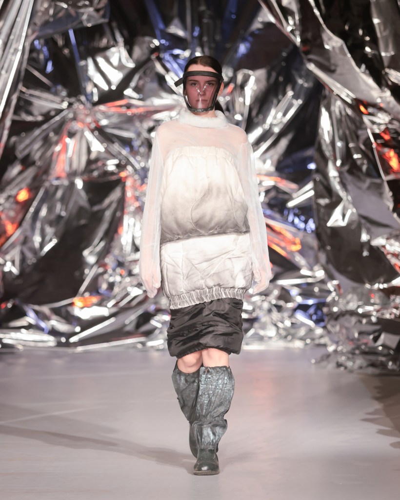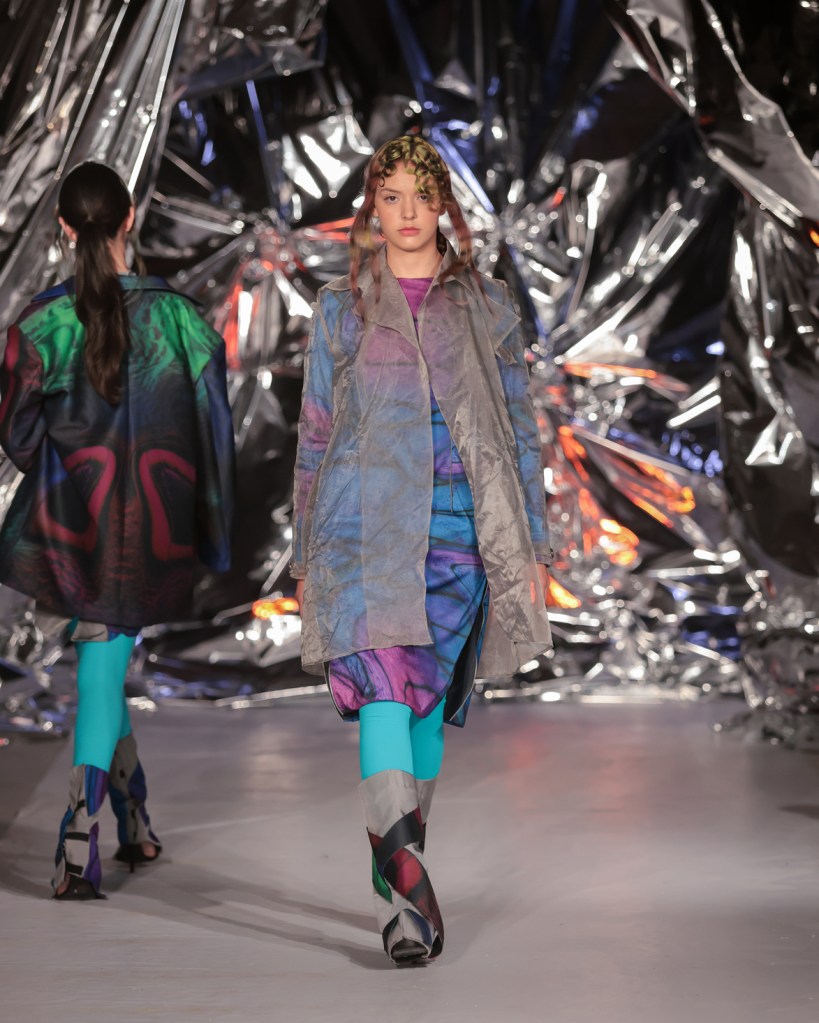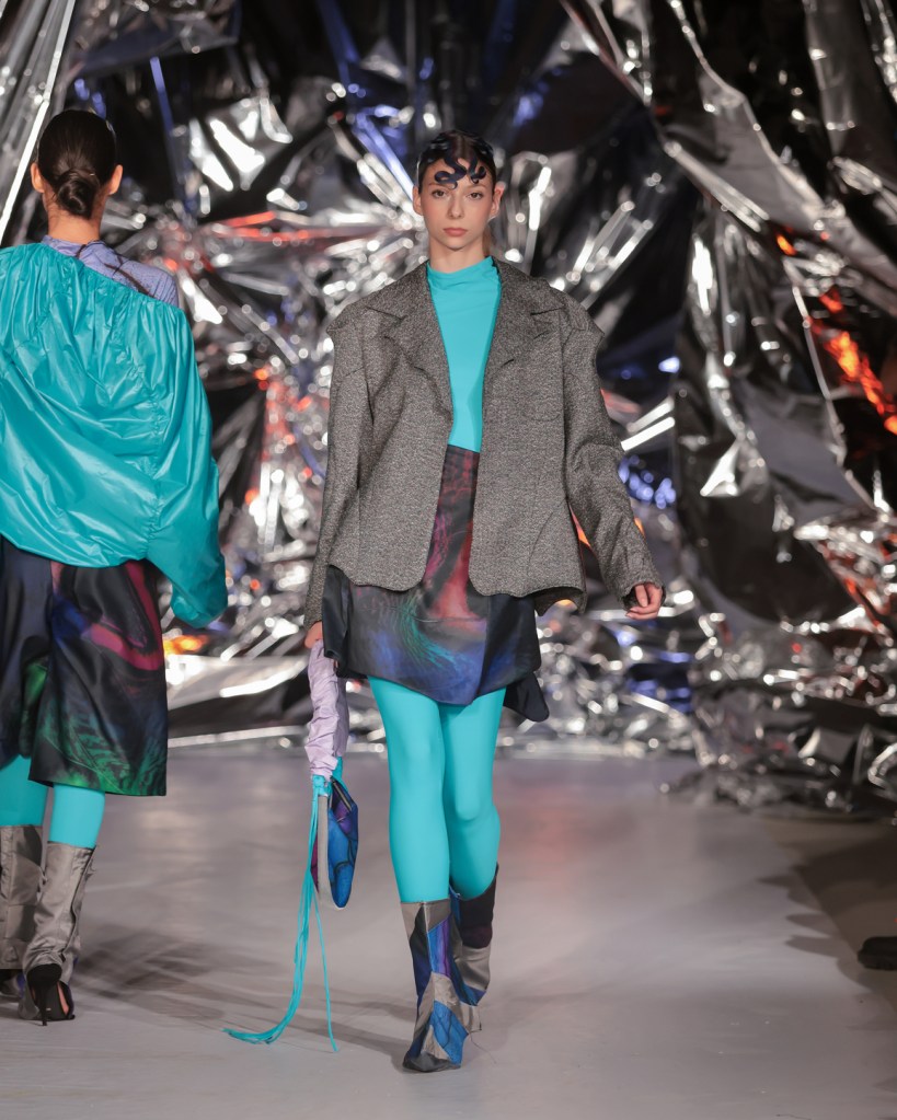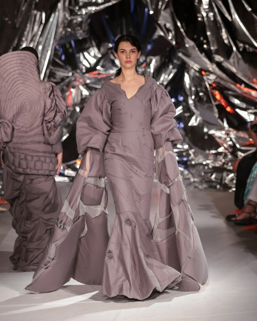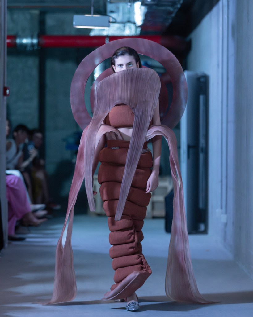 Kicking off the unfolding extravaganza with a stirring social agenda, the fashion shows not only dazzle but also shed light on the intricate socio-political narratives that infuse the ethos of the industry. Leading this charge was the Ukrainian Fashion Education Group, showcasing collections borne out of the crucible of wartime struggles, aimed at capturing the audience’s hearts and minds with their unique narratives. The ambitious choice of venue—a bunker nestled beneath Promenada Sibiu—will serve as an evocative backdrop, amplifying the emotional resonance of these poignant creations. Ukrainian Fashion Education Group is the biggest Ukrainian educational institution for fashion experts, and it has more than 100 courses, lectures, workshops, and webinars. We provide students with in-depth knowledge and necessary tools for fashion product creation — from ideas implementation to effective brand promotion in the global market. We are participating in Feeric Fashion Week for the second time, showcasing new work by our students titled «Existence»: ‘’ We are mastering the highest degree of being instead of surviving. UFEG’s students continue to draw inspiration from the deepest matters through the most challenging times. The future, love and nature, our roots, and the passage of time are exactly what our designers thought about when creating a catwalk show. We carry the wisdom of many generations and boldly look forward. UFEG shows the world the true creator’s power. Fabrics: organza, satin, velvet, suit cloth, mikado, chiffon, polished cotton, knit fabric etc. Additional materials: mesh, acrylic paint, metal wire, decorative beads, etc. Key features are volumetric sculptural futuristic elements.’’