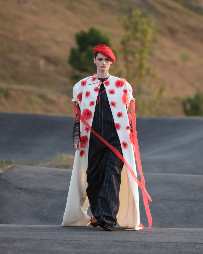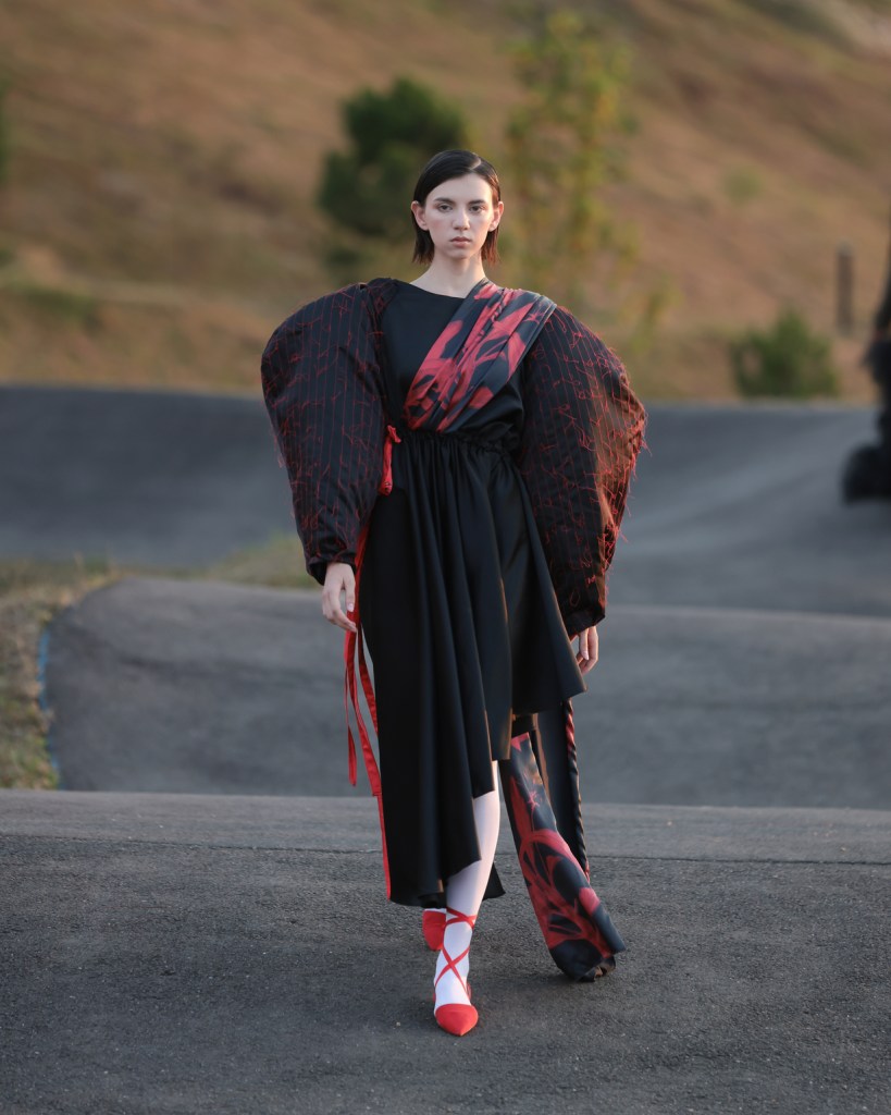 This year’s key concept is 𝒇𝒍𝒖𝒊𝒅 𝒈𝒆𝒐𝒎𝒆𝒕𝒓𝒚, which involves moving in a sustainable direction by reusing 𝒅𝒆𝒂𝒅𝒔𝒕𝒐𝒄𝒌 materials and silhouette development techniques by deconstructing classic pieces such as the men’s jacket, trench, dress and shirt.