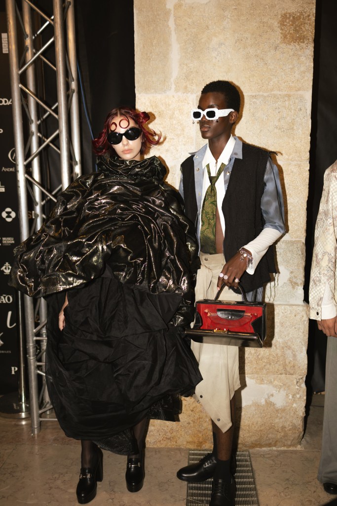 Saturday marked another high point, beginning with ‘Portuguese Soul’ by APICCAPS, which invited the Lisboa Fashion Week audience to immerse themselves in HAVAS Village’s creative atmosphere. Here, the participatory nature of the event became ever more apparent, as diverse collections were presented against the backdrop of innovative storytelling and artistic exploration. Following this lively opening, the focus shifted to Sala do Risco at Pátio da Galé, where a dynamic convergence of fashion shows, artistic happenings, and influential launches created an electric environment, punctuated by discussions of identity and individuality represented through fashion.
