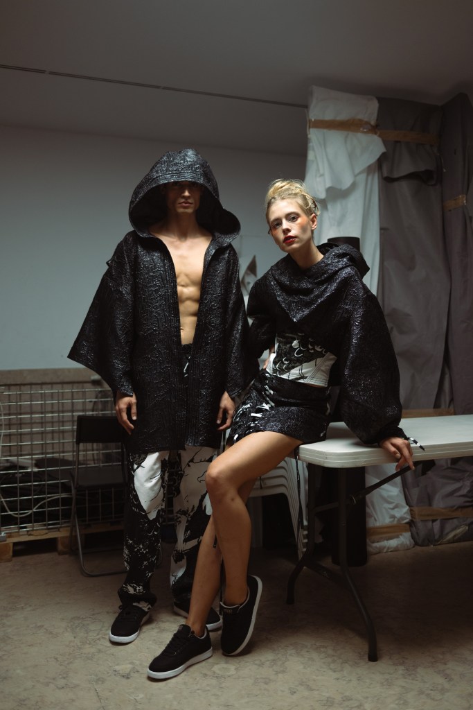 Her collection “NUA i CRUA” centers on storytelling, depicting a character who experiences an epiphany about the superficiality of physical existence. This introspective journey leads her to explore the interconnectedness of all beings in the universe, moving beyond societal norms and low energy vibrations. The narrative culminates in a spiritual awakening where she recognizes the physical body as merely a shell, capable of transmutation into energy. Alongside this profound narrative, the collection’s aesthetic is visually striking and enigmatic, utilizing irony and critique to underscore the character’s detachment from societal expectations.