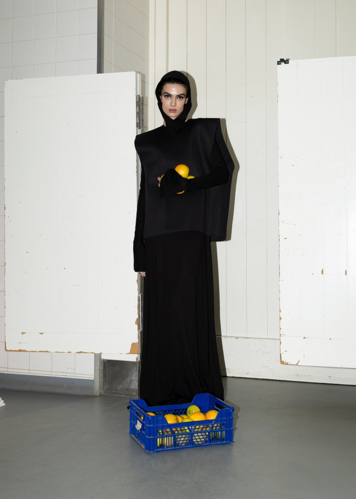 Reflecting an urban style and gender-fluid streetwear silhouettes, “PORTA 19” showcases neutral colors and combines fluidity with structured elements and drapery. Despite the enigmatic absence of a defined identity, VOID conveys a sense of depth and belonging—a notion that its creative direction is rooted in a real story of love, suggesting that VOID possesses a soul.
