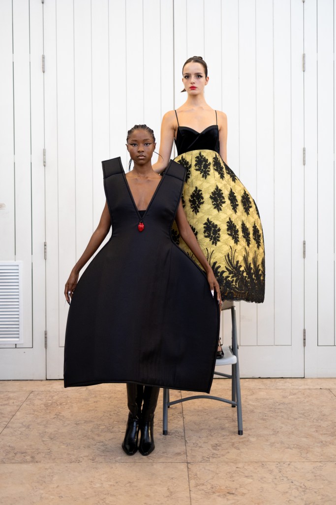 The SS25 collection titled “Before You Forget Me” draws deeply on personal and poignant themes, inspired by a photograph of the same name by Adelaide Khaled. This evocative image captures the designer’s grandparents in a moment of togetherness, serving as a bittersweet reminder of love overshadowed by Alzheimer’s—a condition that erases memories and blurs identities.