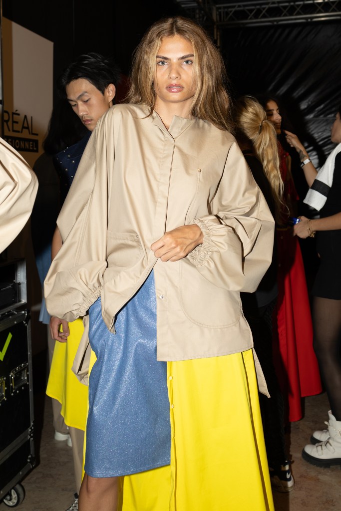 As part of the SANGUE NOVO competition, each collection was intricately developed using materials sourced from key partnerships established by Associação ModaLisboa, highlighting collaborations with influential textile manufacturers, such as Calvelex/Fabrics4Fashion, RDD Textiles, and Riopele. Furthermore, an exciting new partnership emerged with Jean Louis David, who brought competence in styling to the models, ensuring that the visual presentation harmonized perfectly with the overarching aesthetic of each collection. Hair styling products used were supplied by L’Oréal Professionnel, enriching the presentation’s innovative spirit.