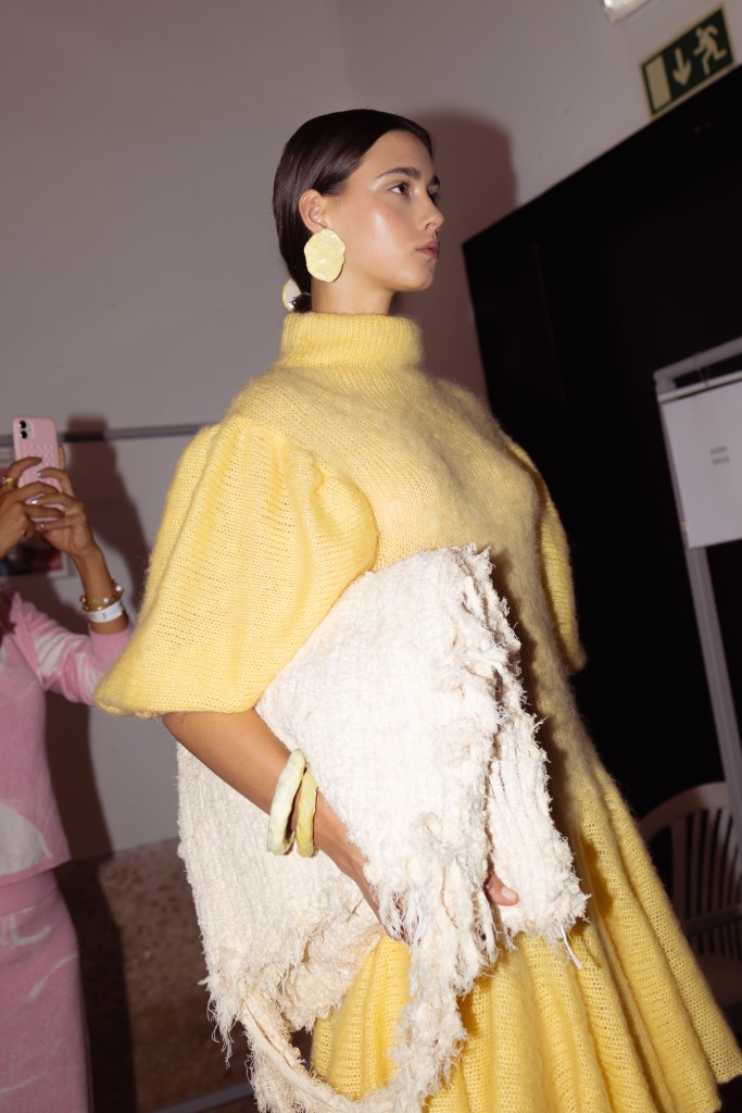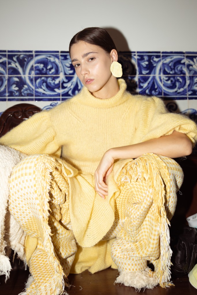 The collection “The First Taste” is deeply influenced by the sensory details of their formative experiences. Drawing inspiration from fruits, scents, textures of carpets and flowers, as well as the interplay of light and shadow in daily life, Júlia and Matilde explore the impact of their roots and traditions—elements that fade like heartbreak. They reclaim and cherish traditional handmade techniques, reimagining inherited materials.