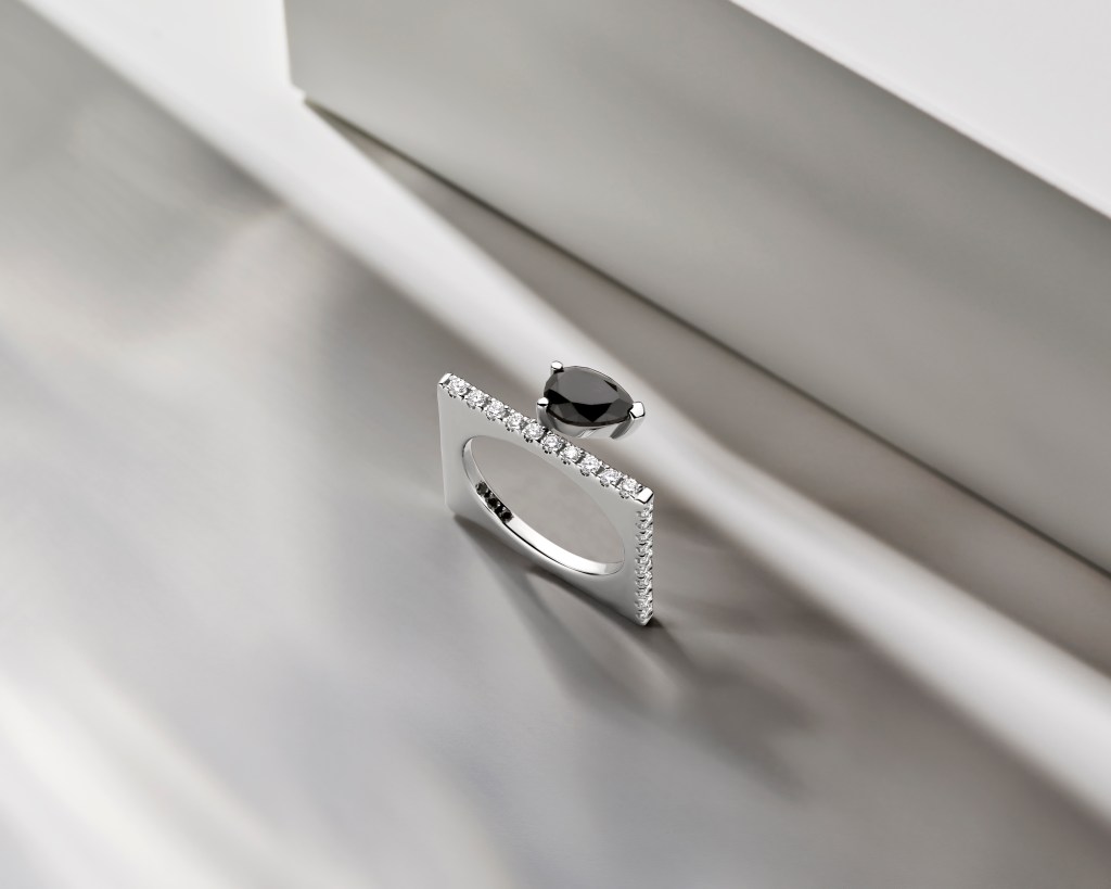 The choice of black diamonds is personal because I find them incredibly beautiful and much more rock-inspired. What I’ve noticed is that people love black diamonds but tend to buy white ones. I think jewelry with black diamonds often comes as a second purchase when clients already own a “classic” diamond. With black diamonds, you can go for larger sizes since they are more affordable. A black diamond doesn’t come out of nature in that color but is treated however, it is still a natural diamond, not lab-created.