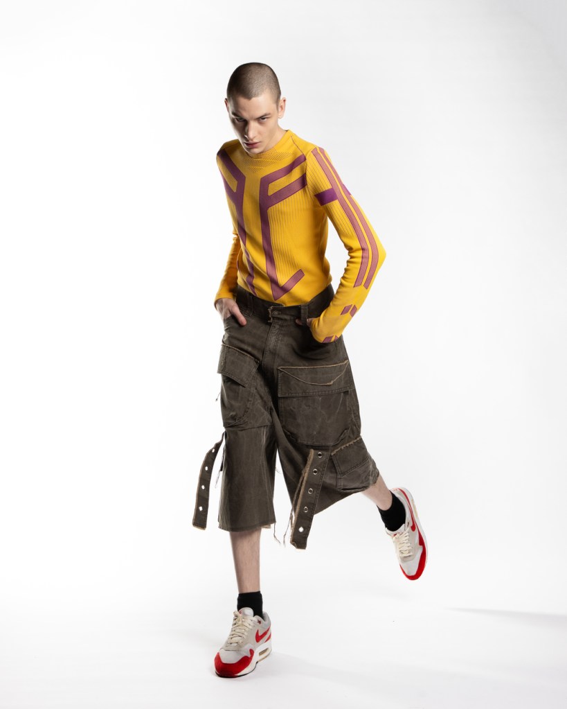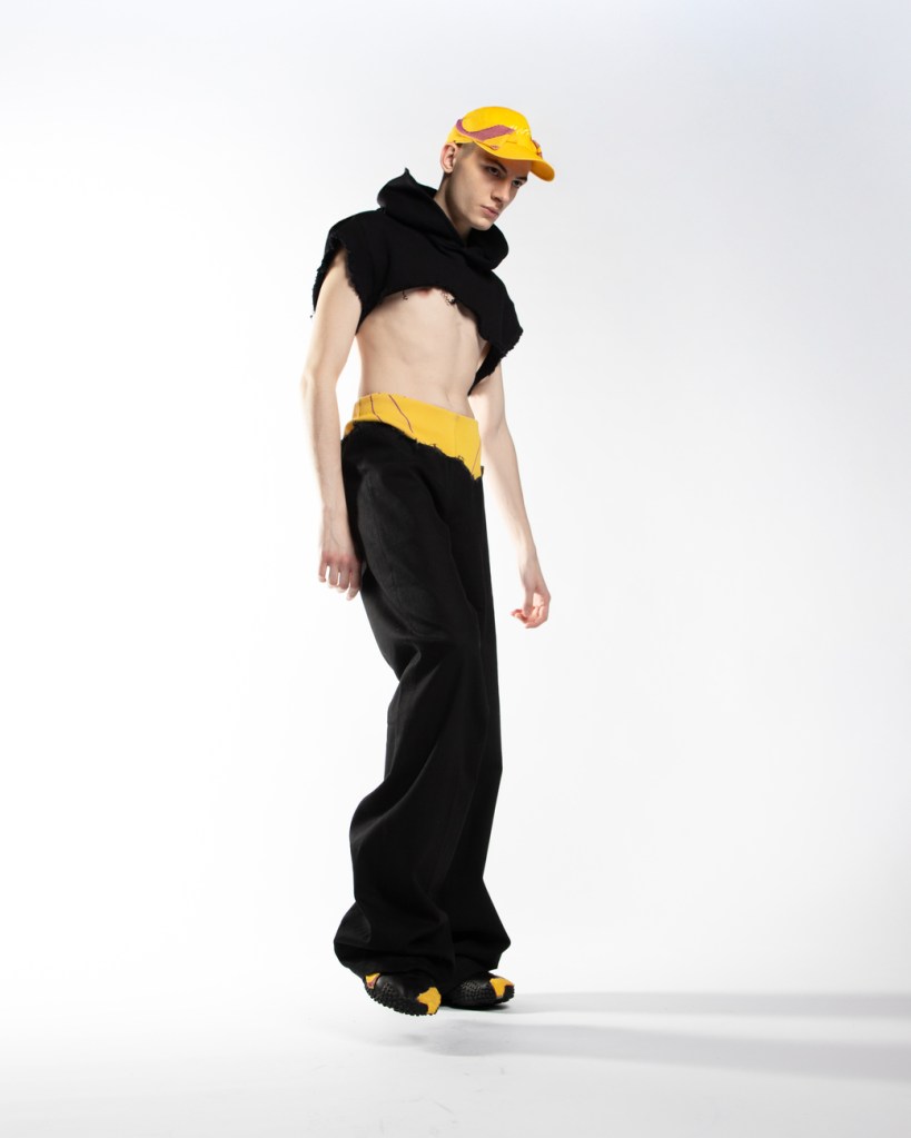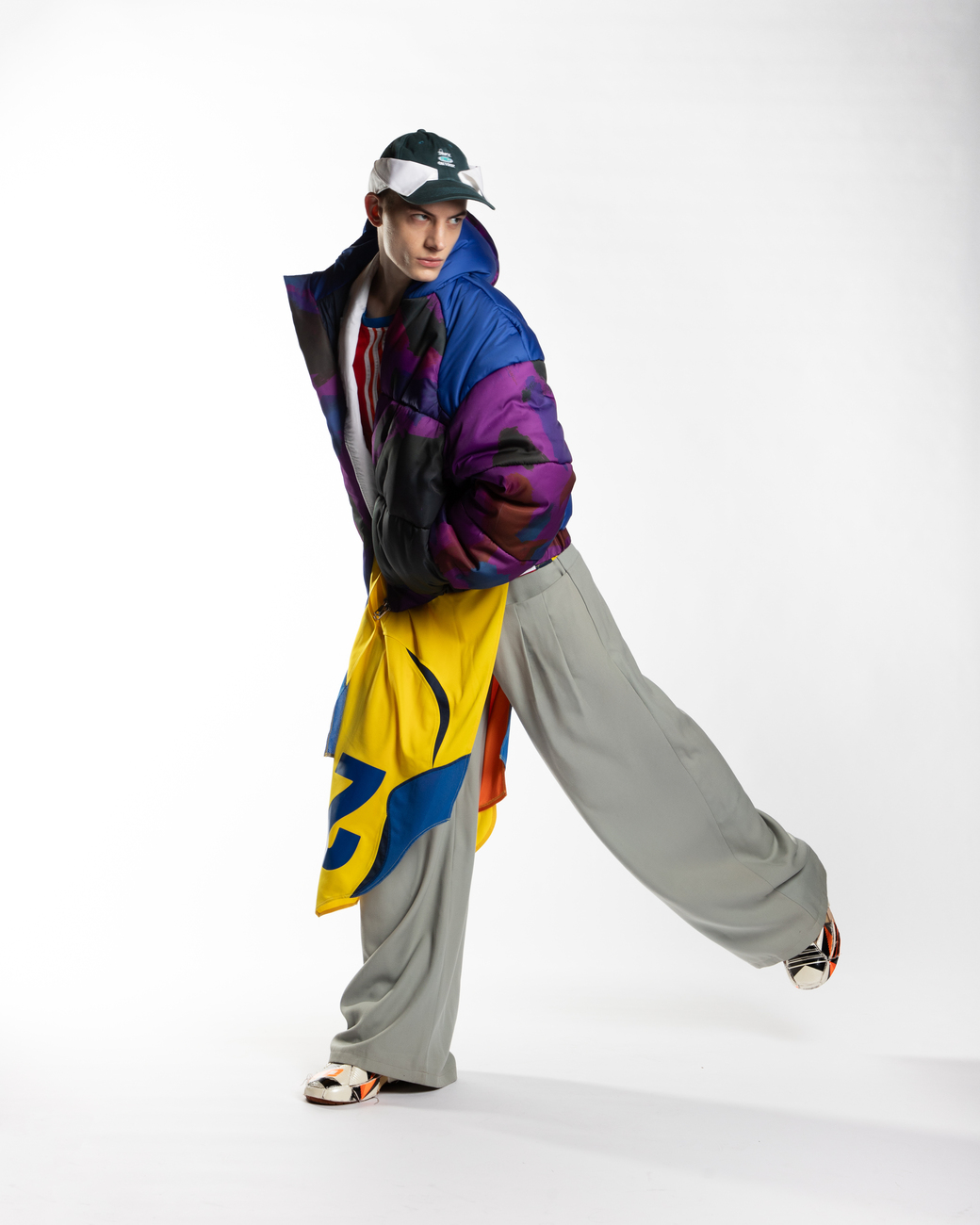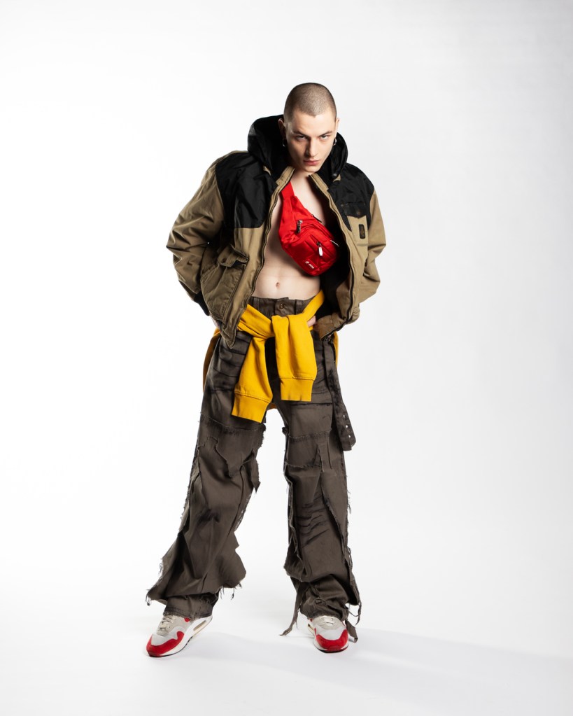 This project draws inspiration from the untamed spirit of the ’90s Gabber movement, translating it into a contemporary language that blends brutality and speed with an uncompromising aesthetic. The vision explores the duality between chaos and precision: oversized clothing, technical sneakers, and shaved heads intertwine with a studied dynamism, celebrating raw energy and the rejection of mainstream-imposed rules. Every stylistic element is a statement of belonging to a subculture that thrives in the relentless beat of hardcore music. “Fast” represents the frantic rhythm and excess, while “Feral” embodies true rebellion against conformity, giving life to a powerful and radical aesthetic.