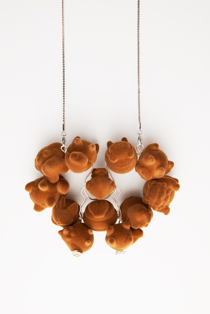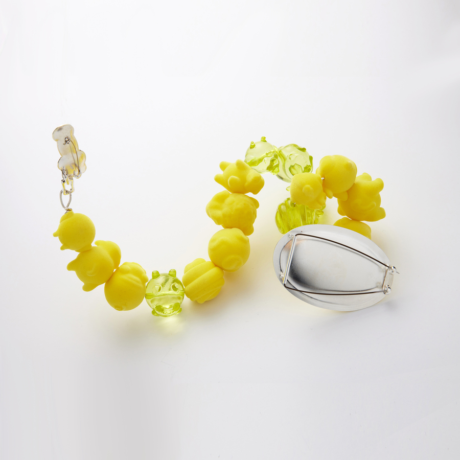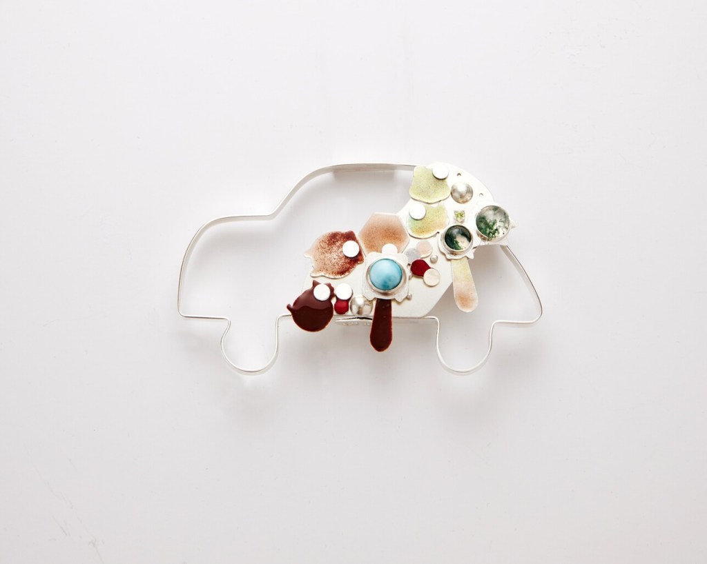 This approach has led me to explore the combination of 3D printing and traditional metalworking in my work. I am particularly drawn to 3D-printed materials because they allow me to achieve smooth, rounded textures and vibrant colors, much like my use of enamel. Additionally, they bring a distinct industrial and modern quality, which helps balance the inherent heaviness of metal. Beyond that, the frequent use of 3D printing in toy design gives it a sense of lightness, playfulness, and accessibility, which are elements I aim to integrate into my work.