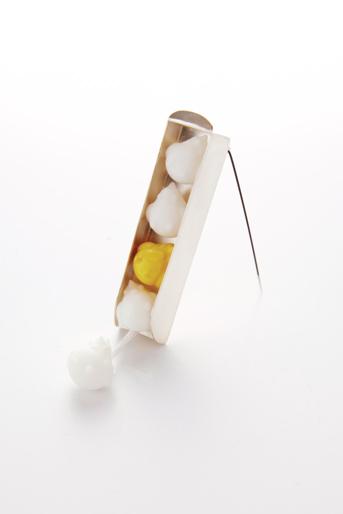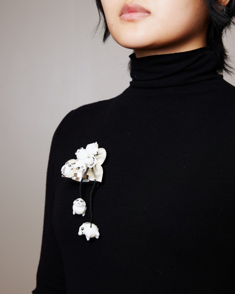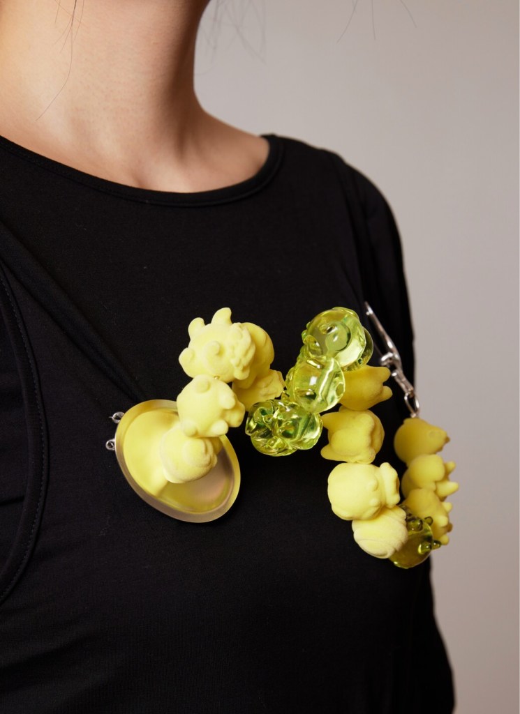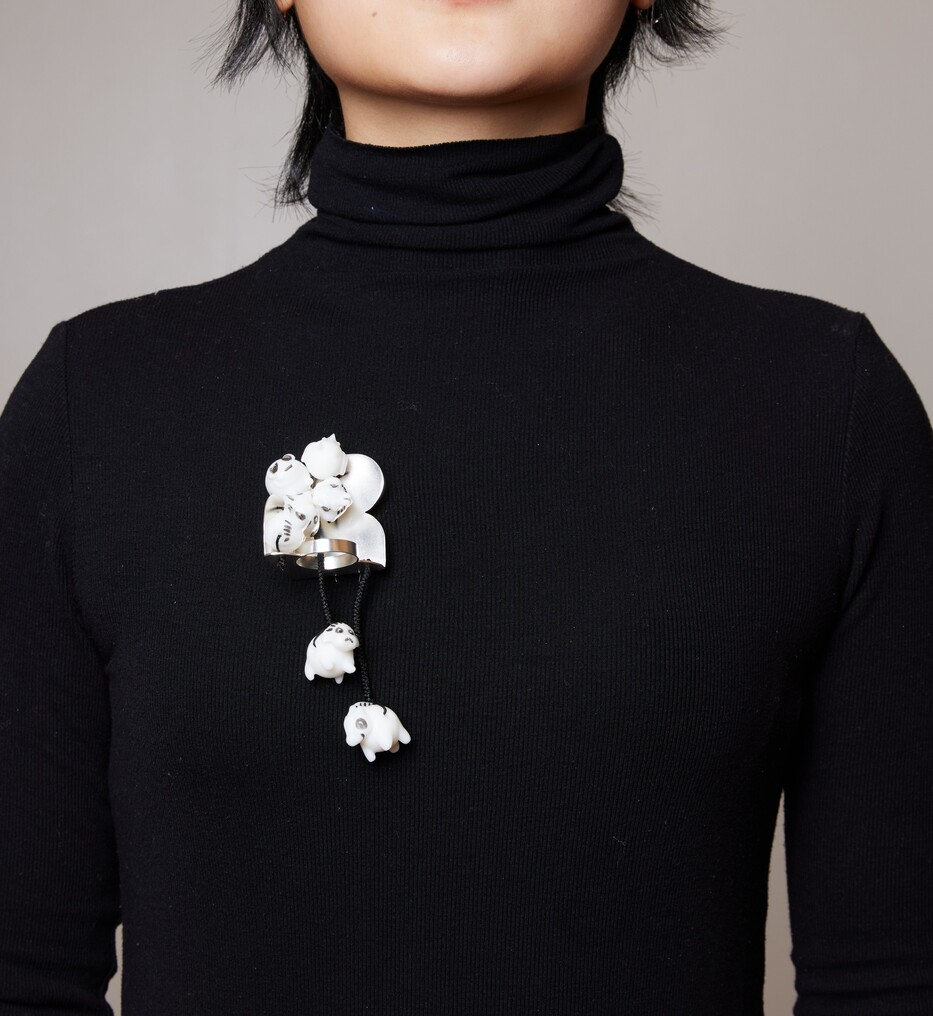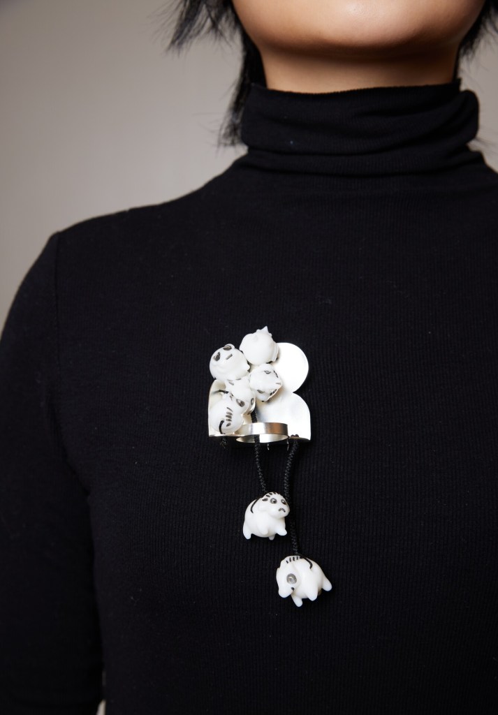 At the same time, I want to continue refining my artistic language, distilling elements from my more experimental works into pieces that can be worn and enjoyed in daily life. This is something I actively pursue through my personal brand, where I take inspiration from my conceptual works and reinterpret them in a way that is more accessible for everyday wear. Through this approach, I hope to bring joy, playfulness, and cultural storytelling to a wider audience, making contemporary jewelry not just an art form but also a means of personal expression and connection.