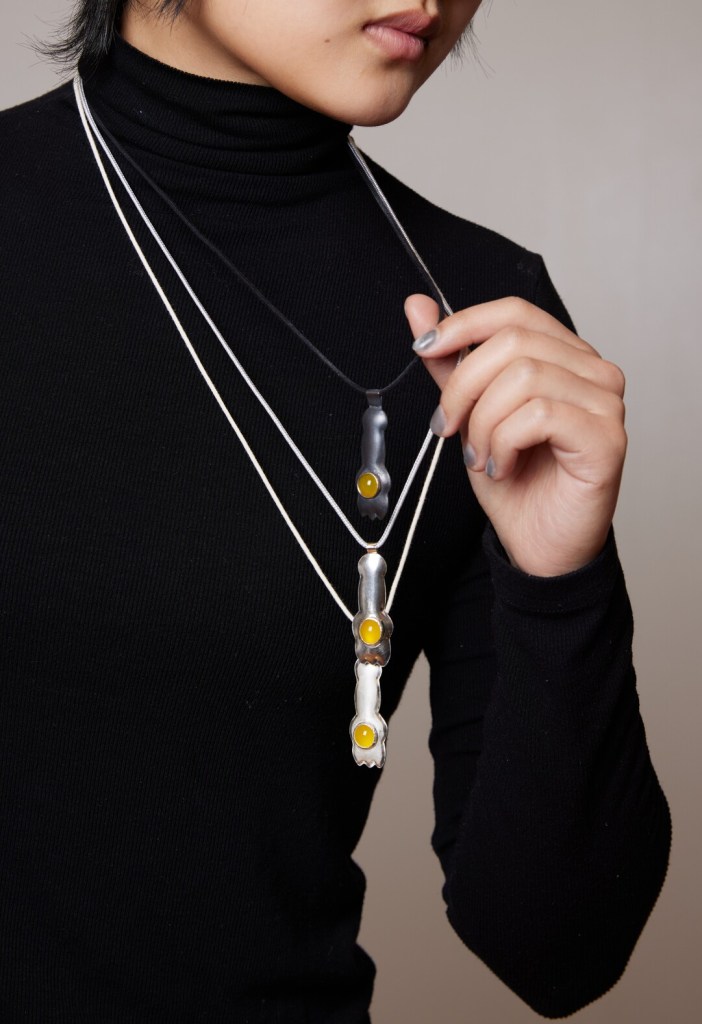 For me, jewelry serves as a bridge between the past and the present, the personal and the universal. Through form, texture, and material choices, I explore themes of identity, memory, and adaptation. Whether it’s through abstracted cultural motifs, unexpected material combinations, or pieces that carry a sense of motion and change, my work embodies the fluidity of my own experiences. This approach allows me to not only express my own narrative but also invite others to connect with my pieces in a way that resonates with their own stories.