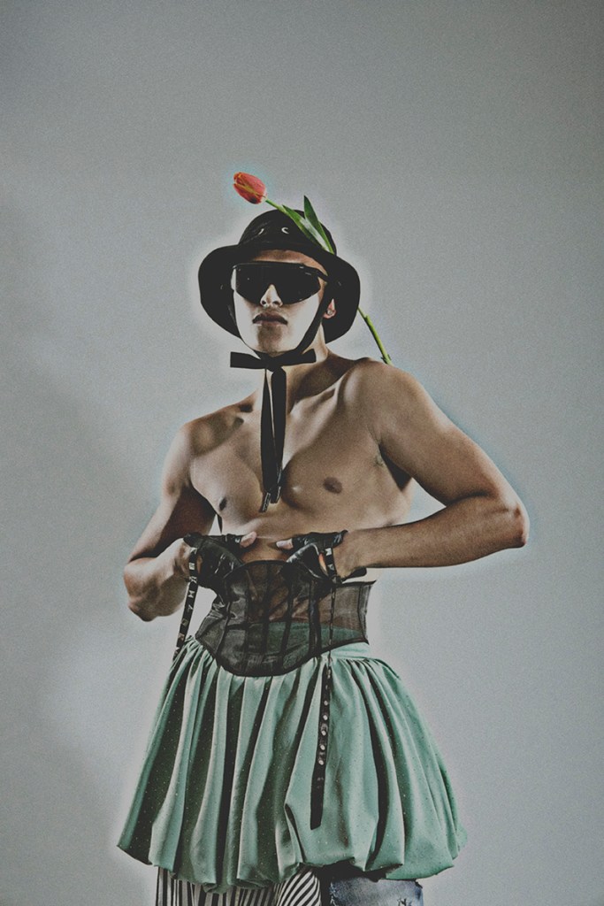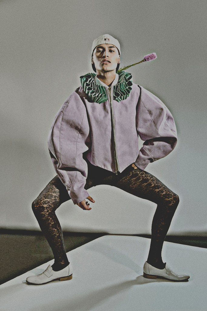 Blazer: JACO + Shirt and Underwear: Calvin Klein + Tie: Stylist’s Archive + Cap: New Era