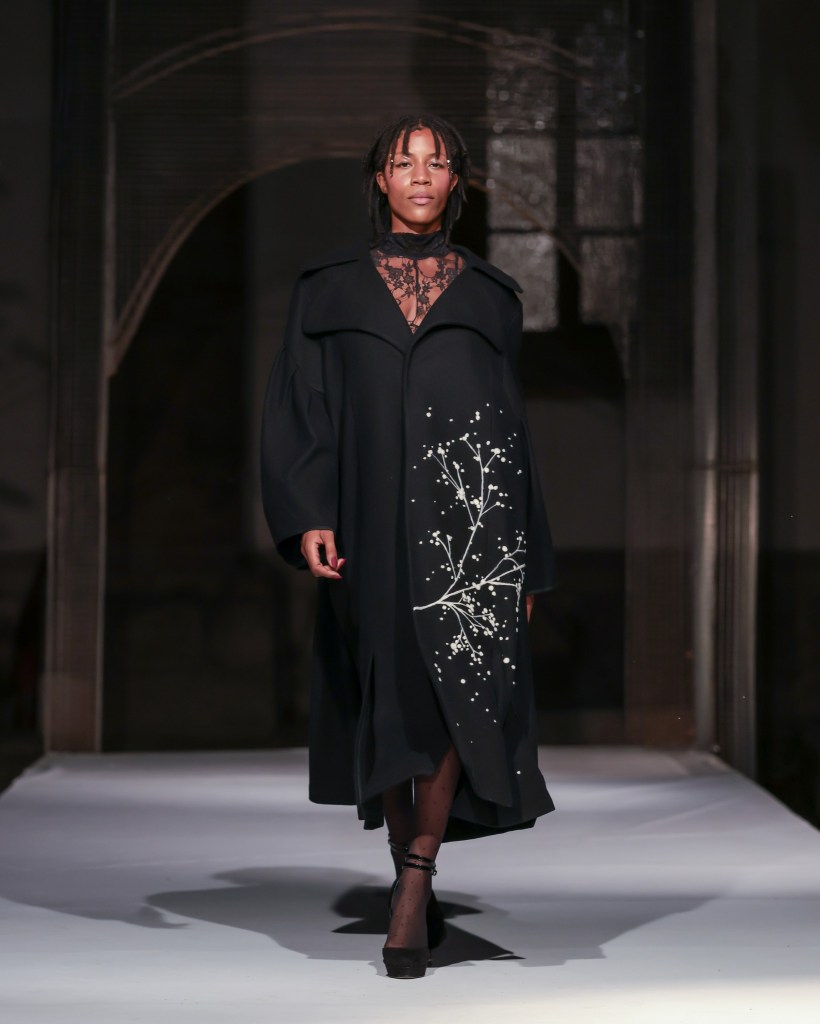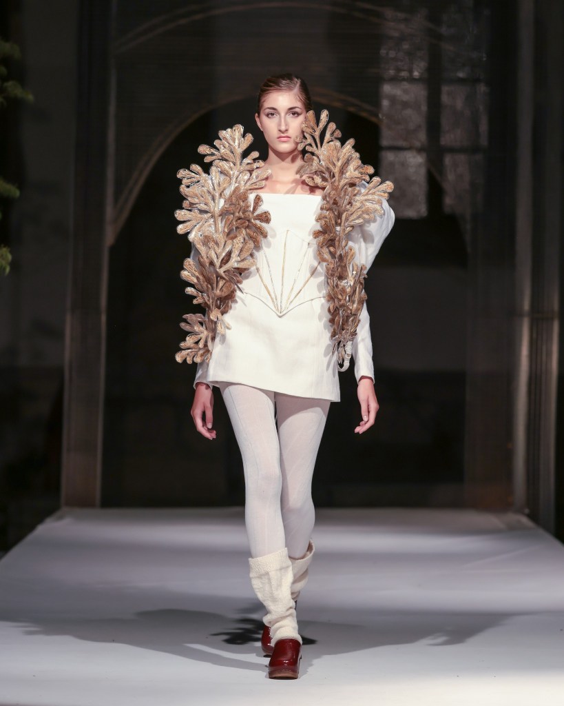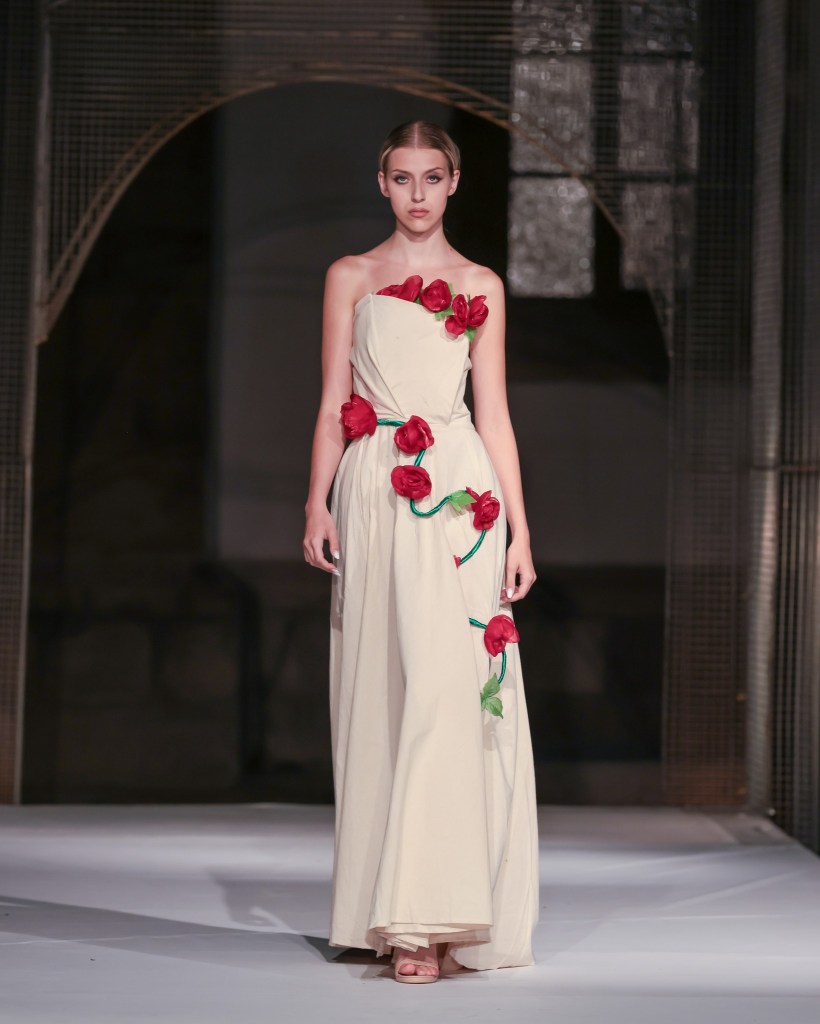 Daiana-Mihaela Stăncioiu’s “UNAPOLOGETIC” merged two-dimensional photographic artistry with three-dimensional garments, adorned with botanical details and intricate embroidery. This collection invited viewers to engage with fashion as an extension of art, where personal narrative and clothing intertwine harmoniously.
