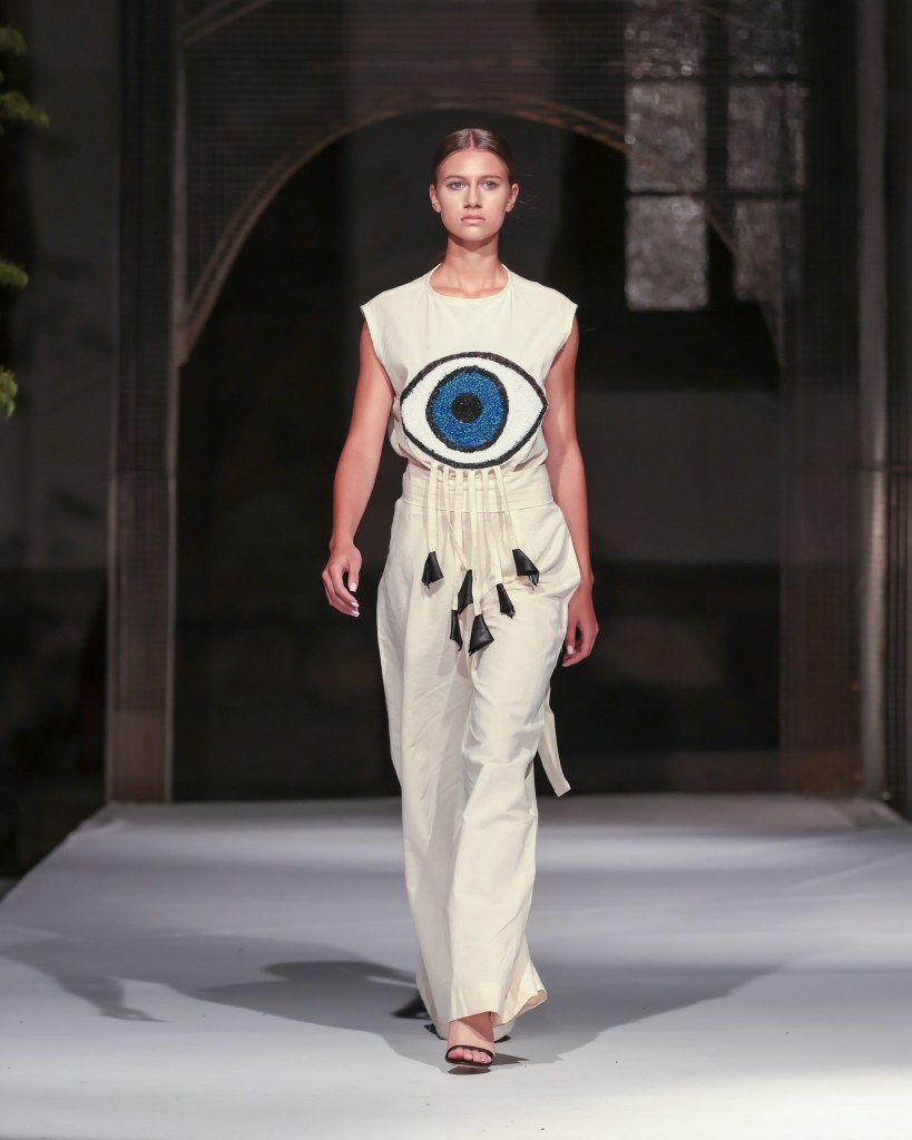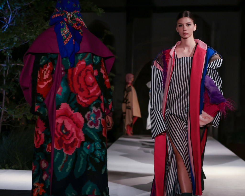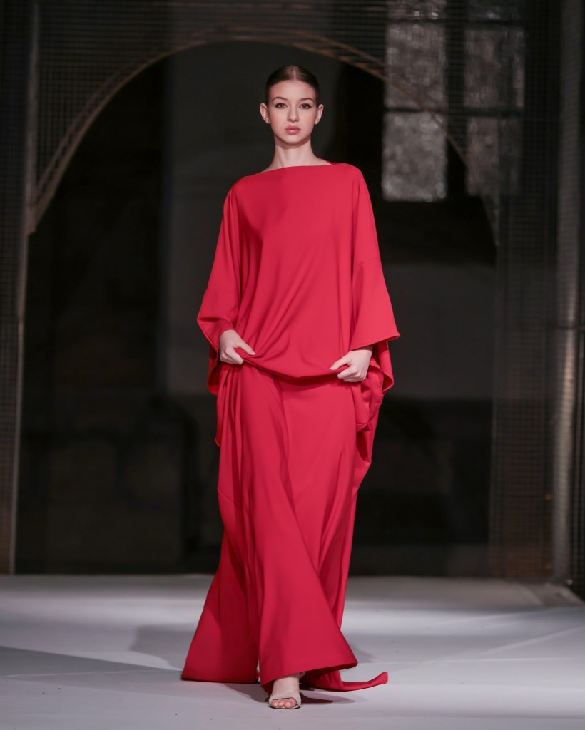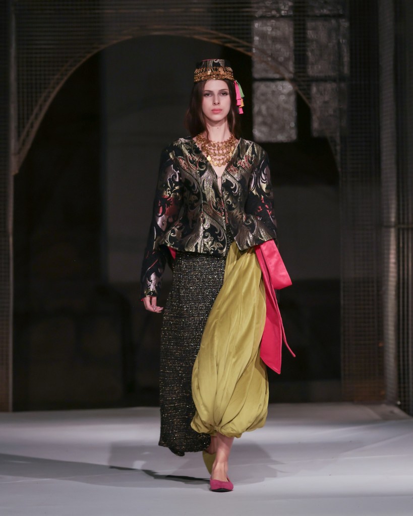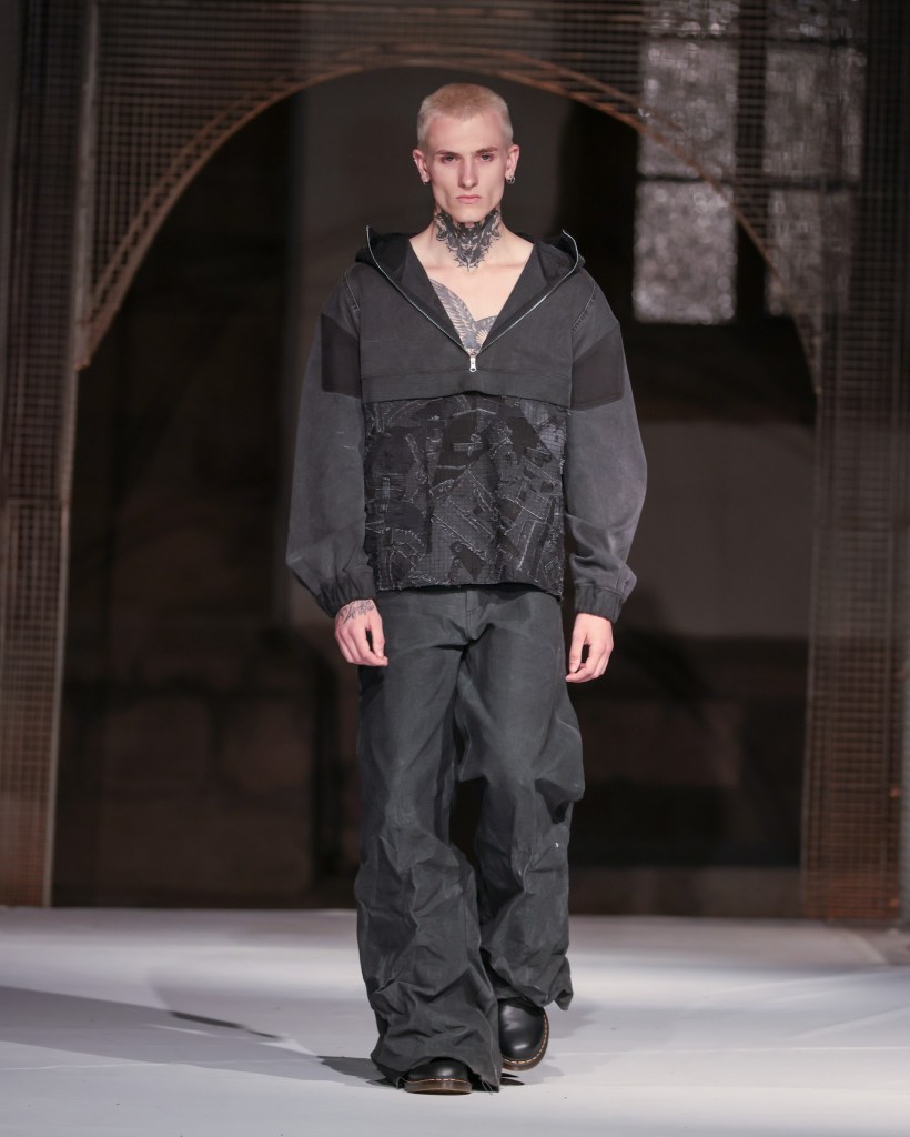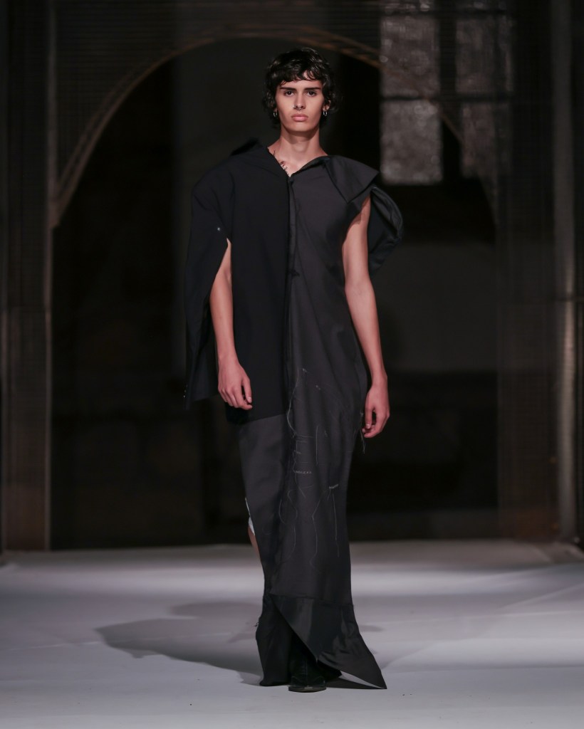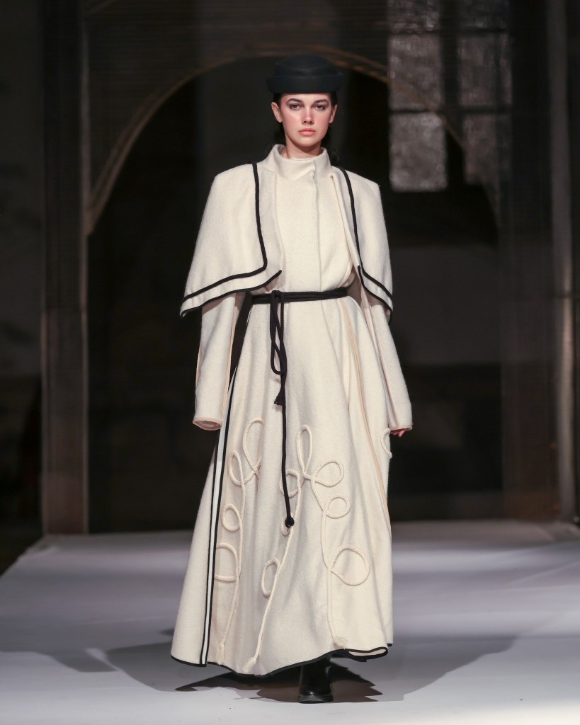Not to be outdone, designers from the National University of Arts “George Enescu” in Iași—Alexandra Țigăeru, Delia Briceag, and Teodora Gaciu —constructed a visual journey where past, symbolism, and future coexisted in contrasting harmony. Their collection seamlessly blended reinterpreted tradition, spiritual symbolism, and deconstructive sustainability, showcasing the rich tapestry of influences that characterize contemporary fashion.