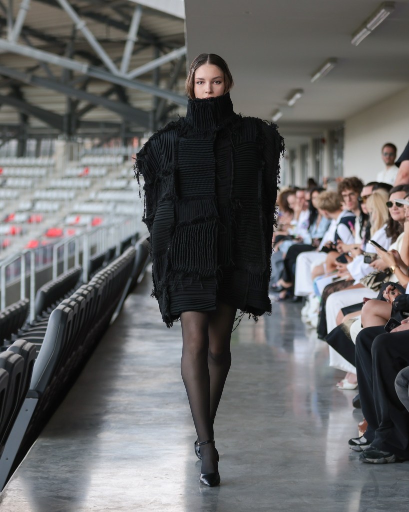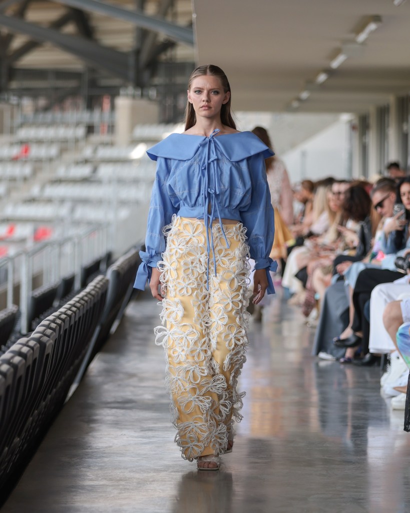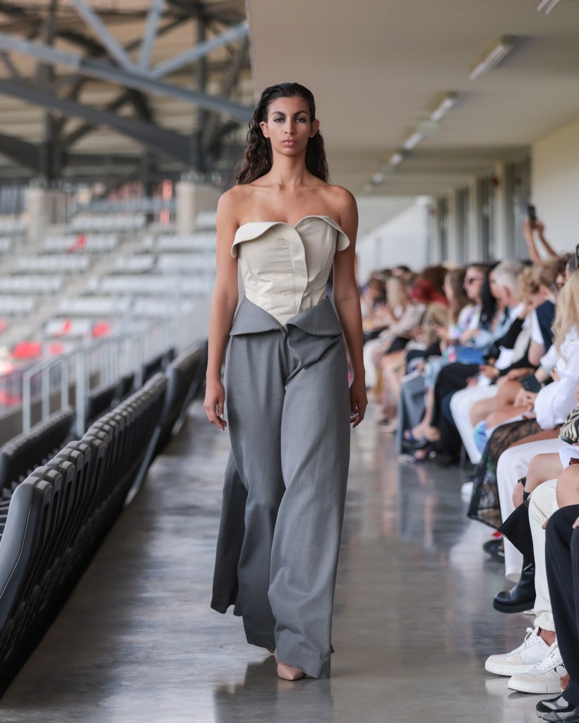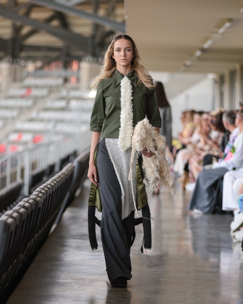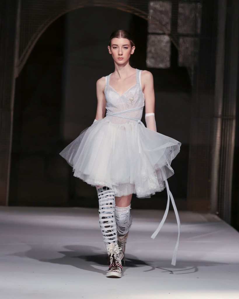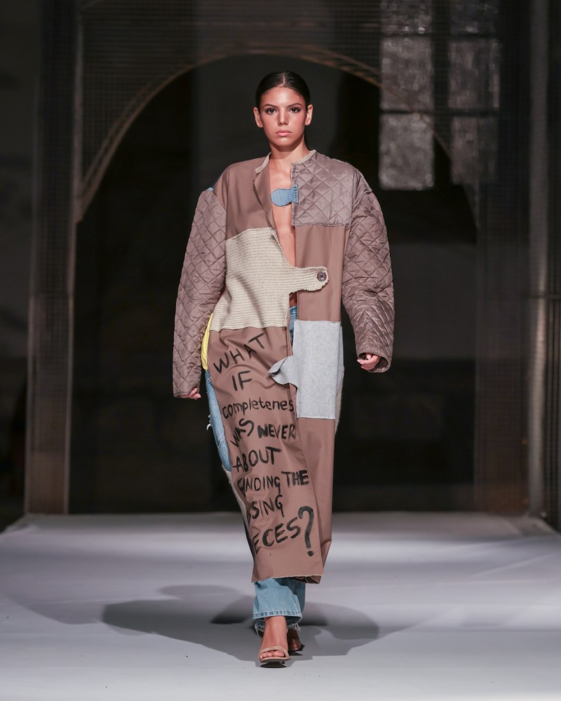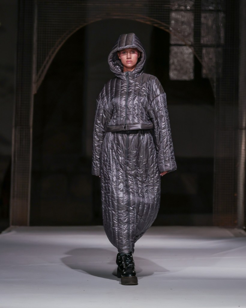 Among the highlights was Mild Power – Kauno Kolegija HEI typifying the dialogue between delicacy and strength, femininity and struggle, as rendered in knits, velvet, and raw denim. It was an evocative commentary on the dualities women navigate daily and the power derived from embracing both softness and tenacity.