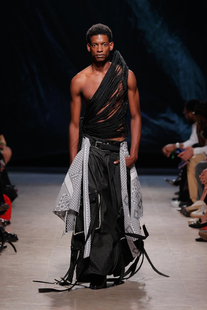 PANO DE PINTI is a collection that reflects the personal and cultural identity of Adja Baio, with hair as the central element of her self-expression. Since childhood, the Designer has nurtured a special connection with hairstyles and braids, but only recently came to understand the deep meaning behind this practice. Inspired by traditional silhouettes, fabrics, and the vibrant patterns of Guinea-Bissau, the pieces connect the Designer’s Guinean roots with a contemporary and experimental perspective. The integration of streetwear adds a striking edge, reflecting her personal style and her desire to exaggerate in the details. The aim is to celebrate the beauty of identity through shapes, textures, and elements drawn from her lived experiences. Each piece asserts who Adja Baio is, in an authentic, conscious, and visually powerful way.