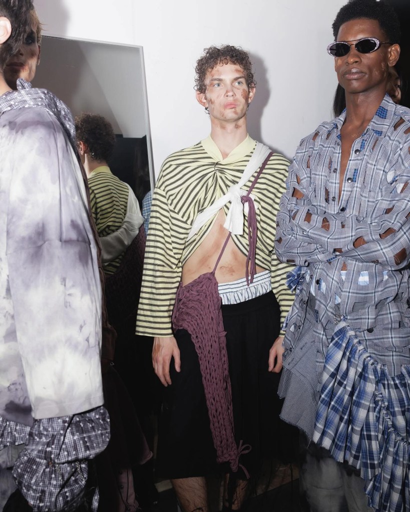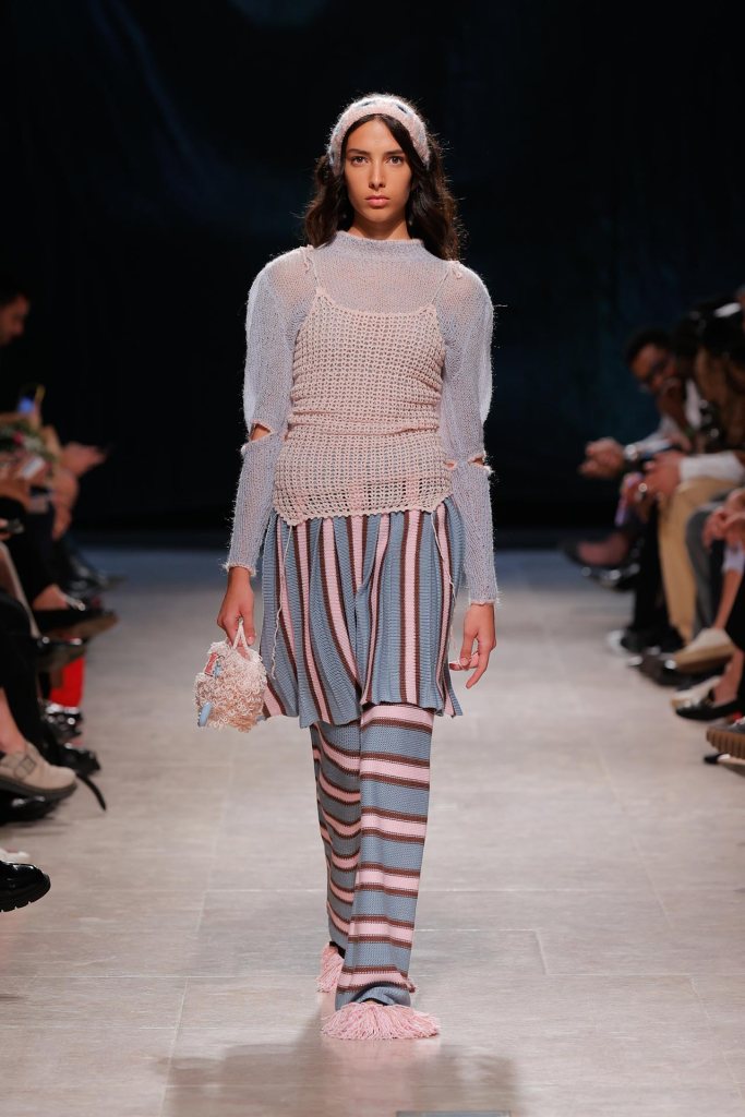 The Mestre Studio brand was founded in 2023 and presented its first collection at Sangue Novo, ModaLisboa’s Young Designers Competition, immediately establishing its nostalgic vein and the importance of memories in shaping its identity. It primarily focused on knitwear and the deconstruction of traditional techniques. Diogo Mestre, the brand’s director and Designer, graduated in sculpture from the Faculty of Fine Arts in Lisbon, in 2022, and completed a master’s degree in Fashion Design from the Faculty of Architecturein Lisbon, in 2024. His passion for fashion has always been present, later merging with art. More than just creating clothing, Diogo aims to craft narratives that deeply immerse his audience in his universe.