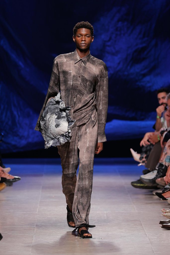 SUMMERING celebrates collectivity, warmth, and rest. Summer in the village is the space where the old meets the new, where memory intertwines with invention, and where fashion becomes a language of celebrating a life that is simple yet multiple and versatile. This collection suggests a summer of contrasts, rustic and sophisticated, traditional and technological, memory and experimentation. It is the celebration of a plural summer, one that is not bound to a single way of living or dressing, but that opens itself to mixture and transformation.