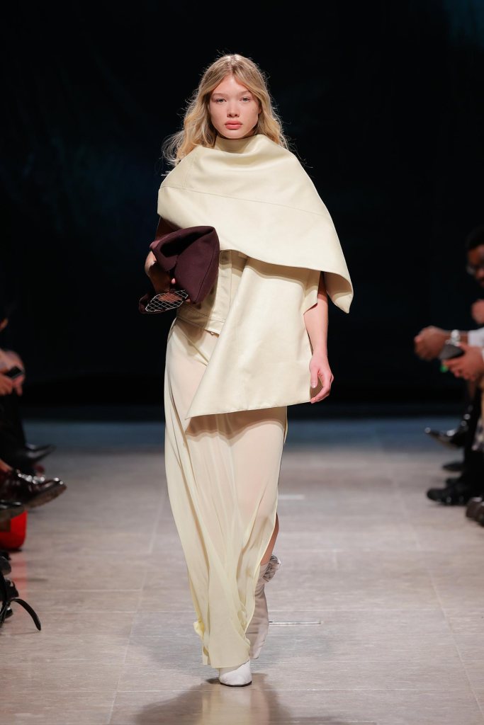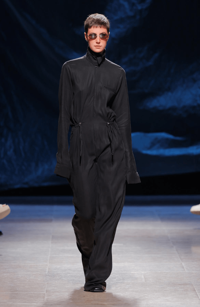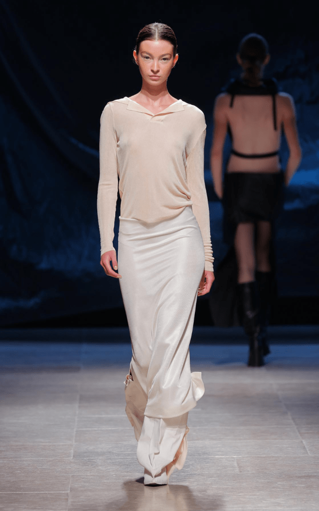 STONE AGE – SPRING-SUMMER 2026 – Kolovrat is always playing. From the obvious weight and shape of a rock to the concept of presence, the work moves across grand silhouettes and slides into the fluidity of the mind. In the Spring/Summer 2026 collection, earthy tones and blacks trace the path defined by cottons and organza.