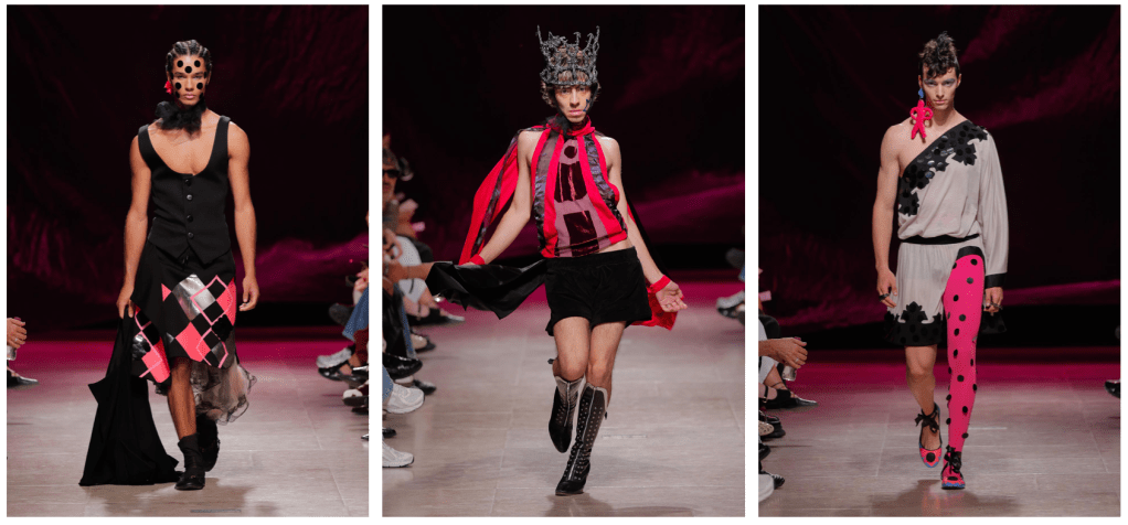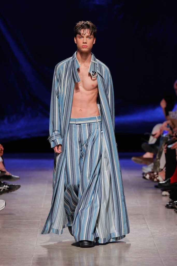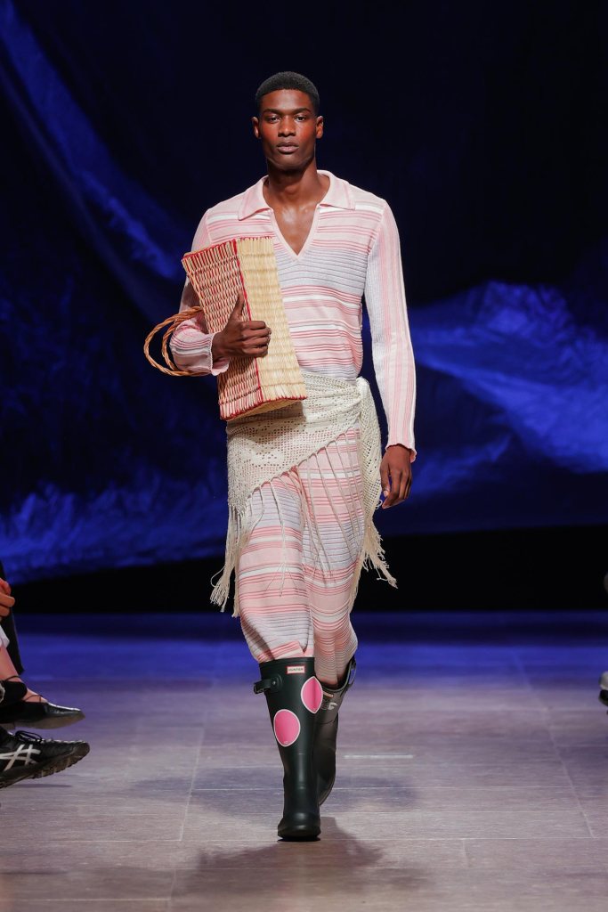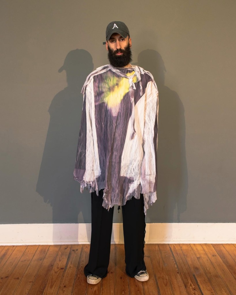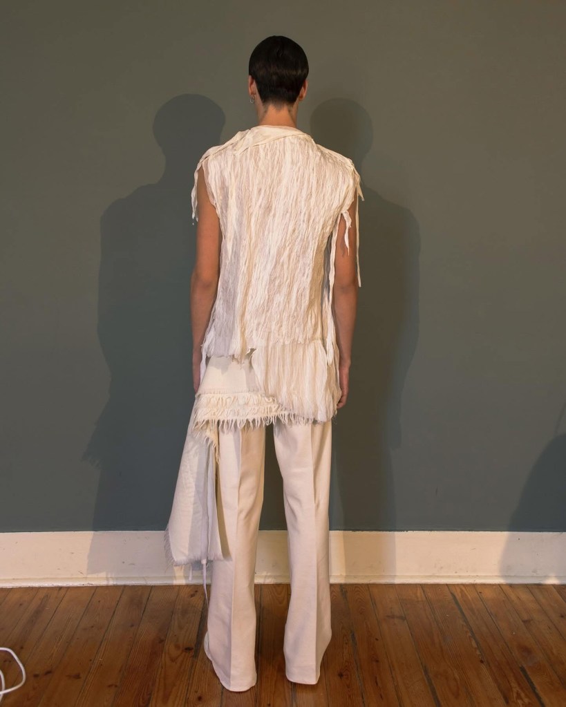 Gabriel Silva Barros, raised on Madeira Island, studied at Central Saint Martins and the University of Westminster, in London. His design ethos combines eclectic influences from the past and present, creating dynamic silhouettes with a play on tradition and the unconventional. Passionate about craftsmanship, Gabriel challenges gender norms through world-building and storytelling. Gabriel has worked at Palmer//Harding and Vivienne Westwood, and aspires to introduce a different perspective on menswear, contributing towards an inclusive future. He seeks to revive fashion’s sense of fantasy and exclusivity.