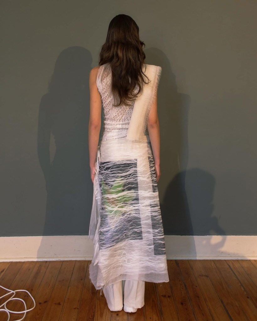 Sara Maia is a Portuguese fashion designer graduated in Fashion Design from Modatex, Porto. Based in London, she has been part of creative teams at brands such as Marques’Almeida, Aitor Throup, and Maharishi. These experiences deepened her understanding of clothing as both structure and narrative. Simultaneously, she taught at Modatex, consolidating a critical and reflective approach to design. Her practice, rooted in visual research and construction, seeks new forms of expression that intersect body, memory, and gesture, exploring the potential of clothing as language. She recently completed a Master’s degree in Fashion at the Royal College of Art, London, where she expanded her research interdisciplinarily, integrating textile experimentation, image, and performance to question the boundaries of what clothing can communicate.