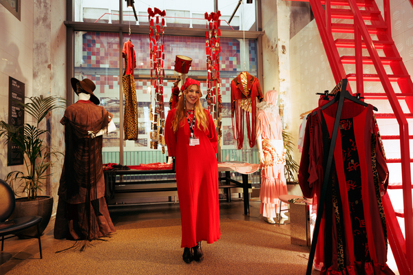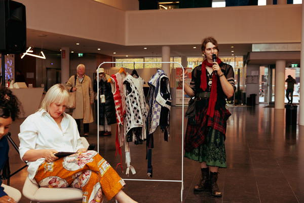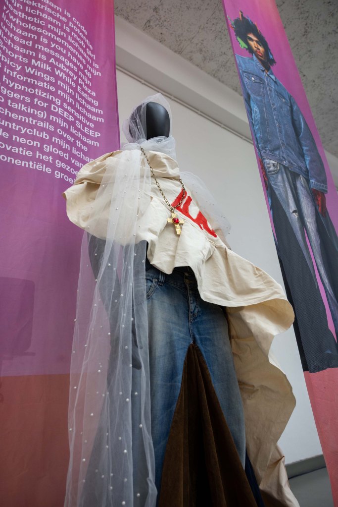 In parallel, Marlon Claessen curated the ESSENCE Exhibition, featuring international designers alongside work by Toneelacademie Maastricht students Valerie Ludwig, who presented The Songs of Girlhood—a radical feminist performance exploring collective healing through voice and movement—and Jeroen Bik, who showcased “ME TOCA MAÑANA”, an interactive work making viewers active participants through digital platforms, fashion, and video.