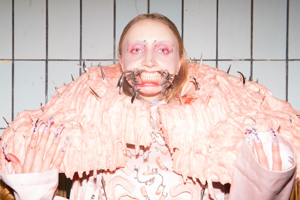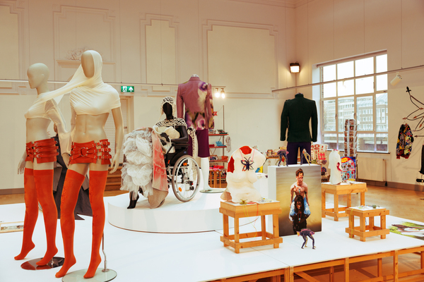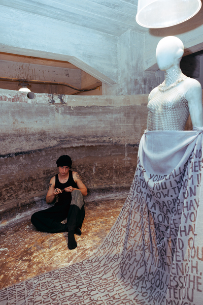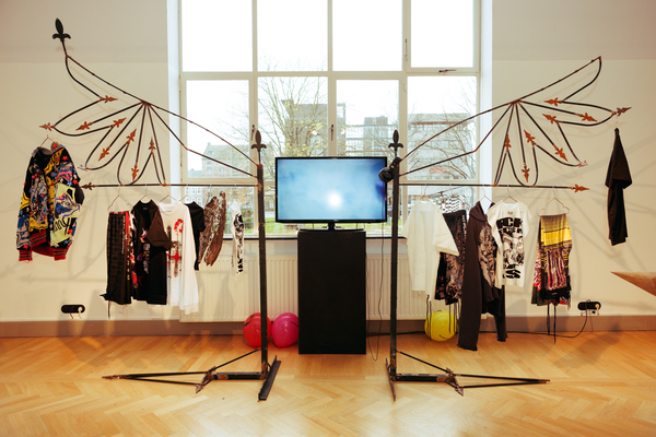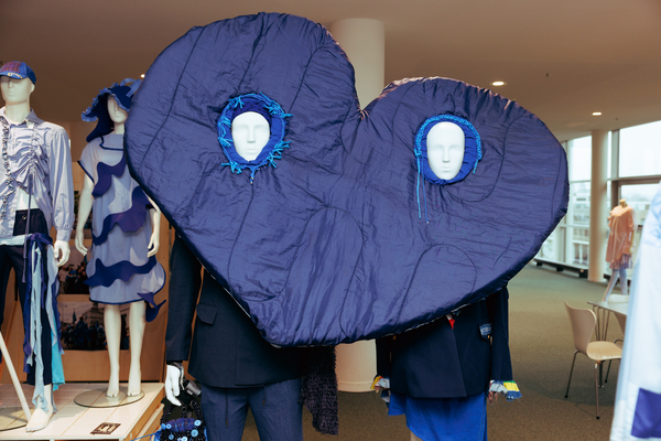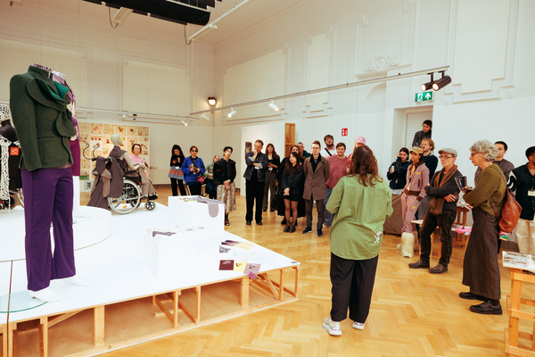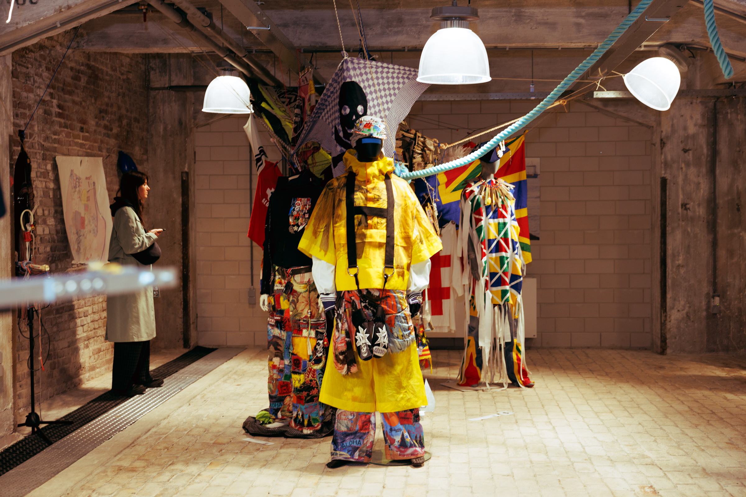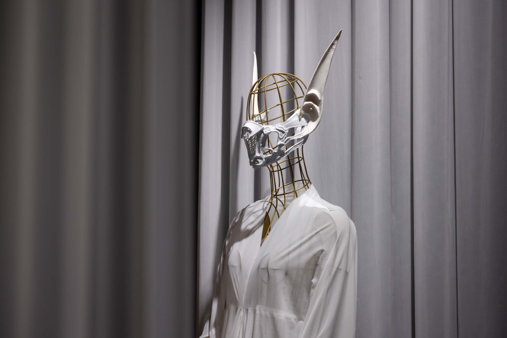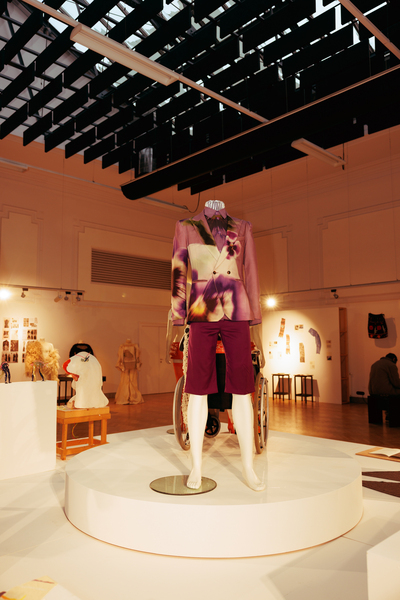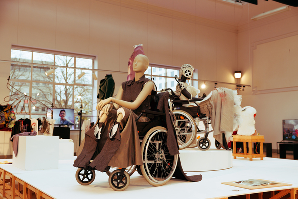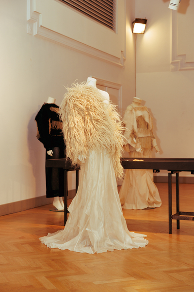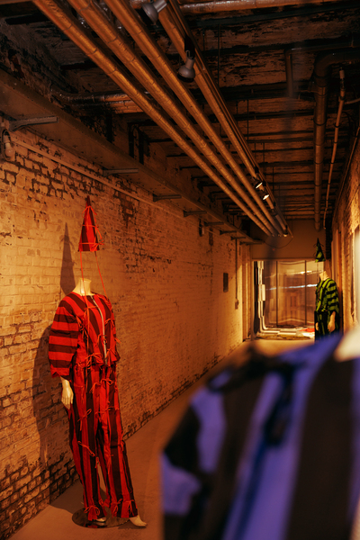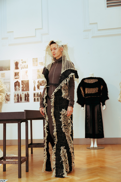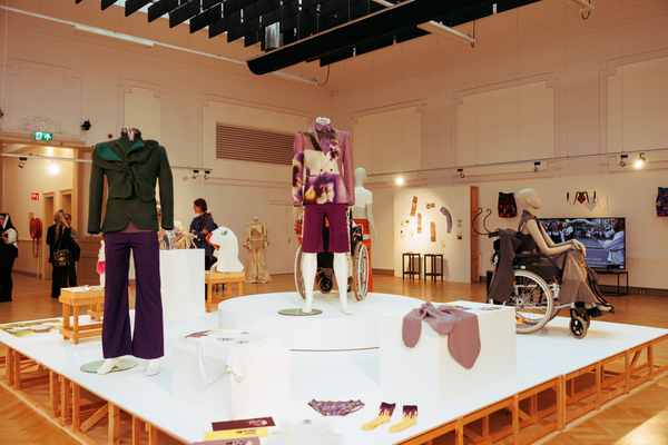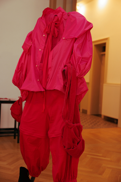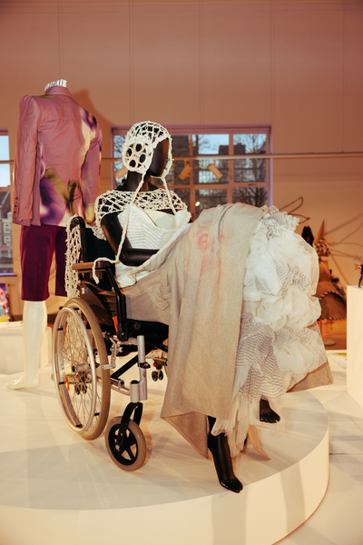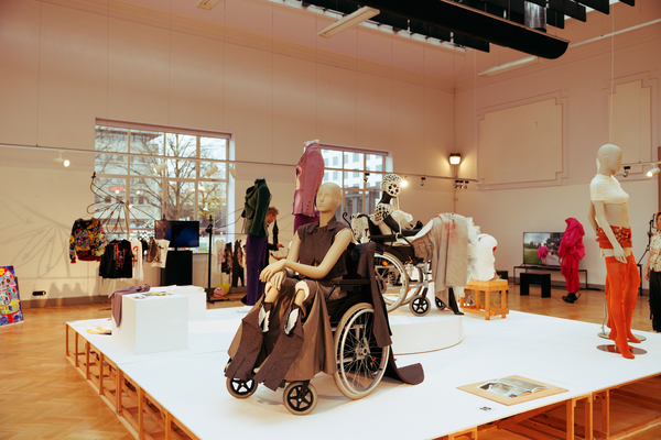 The exhibition also featured interactive works that challenged conventional fashion systems: Kim Gemmink’s In The Corners Of A Circle offered a collection without defined looks, Giada Lou Hammel’s DREIHUT critiqued smartphone culture through collective movement, and Hannah Smith’s The Gentle Frame explored disability through wearable art. Karl Joonas Alamaa & Lisette Sivard documented the 125-kilometer performative fashion show MANIA GRANDIOSA, questioning fashion’s obsession with novelty.