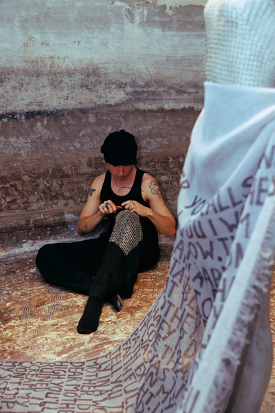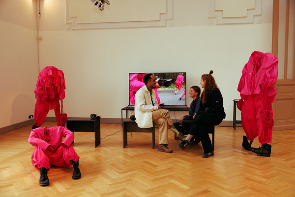 For this year’s exhibition program, FASHIONCLASH invited four fashion makers to collaboratively develop the curatorial concept for New Fashion Narratives at Bureau Europa. Earlier this year, they took part in a residency week in Maastricht, which led to the creation of this year’s curatorial framework. The exhibition, titled Collective Movements, is curated by Jonas Zitter, Paula Dischinger, Rafael Kouto, and Tjerre Lucas Bijker, and explores how fashion can act as a tool for connection, resistance, and collective action — operating at the intersection of fashion design, activism, and communal practice. The curators aim to present works that transcend dominant systems by embracing cultural rituals, shared knowledge, and collaboration.