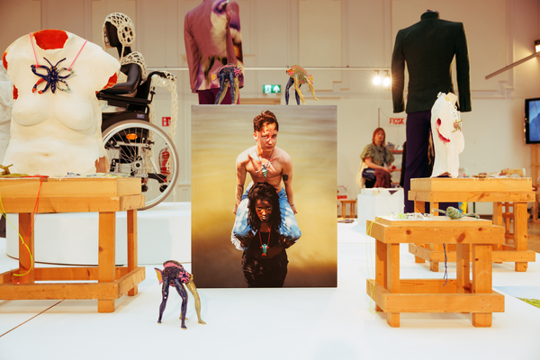The exhibition on the third floor of Centre Céramique presents results from several participatory projects, including Mensen Dragen Mensen (People Carrying People) developed with Noah Jansen and partners for Heiligdomsvaart Maastricht. Over 100 participants — aged 3 to 70 + — co-created costumes, banners, and objects made from recycled textiles collected via Rd4 Reinigingsdiensten. The documentary, created by Sem Dumont (Opulence Films), about the project premiered during the festival.