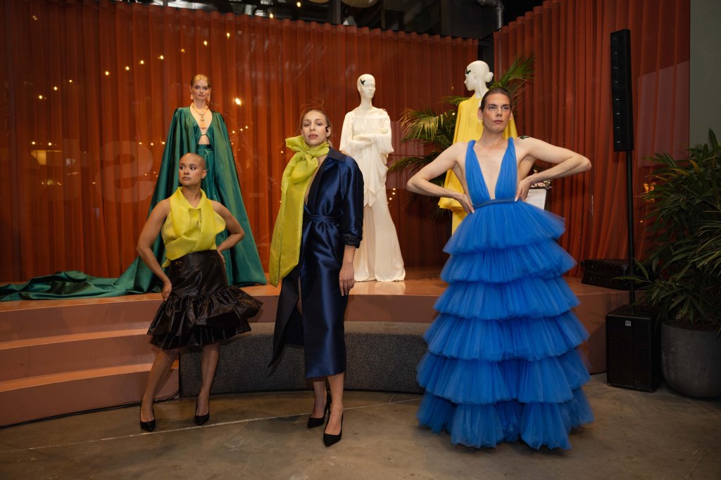 Cultural resistance and activism manifested through Mariia Pavlyk’s Spero, connecting Ukrainian Tripillia–Cucuteni symbolism with traditional Hutsul weaving techniques, and Kantamanto Social Club, which presented upcycling activations in collaboration with communities across Ghana, Canada, Egypt, and India. The Platform transformed a garden fence into monumental angel wings displaying a collaborative collection by eight designers, while G(end)er Swap invited participants to hack the binary through DIY customization, centering textiles as tools for self-expression and resistance.