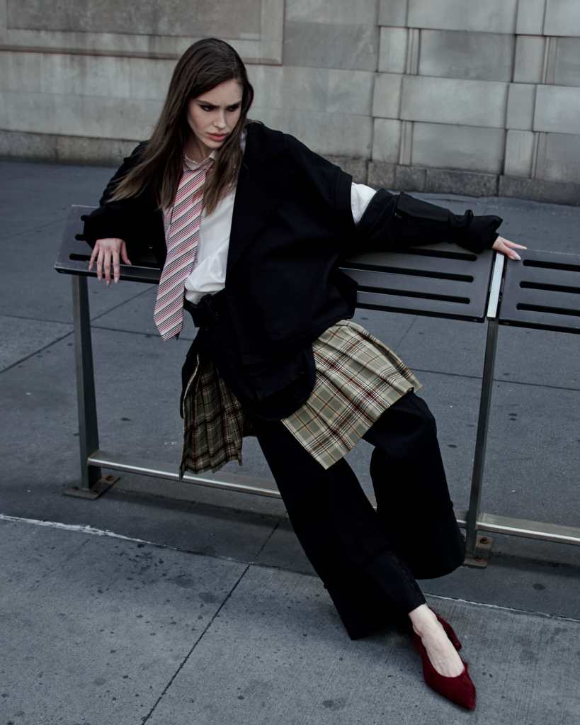 trench + skirt: AXL MURATORI – shirt + tie MOODART’S ARCHIVE – jeans DANIELAPI