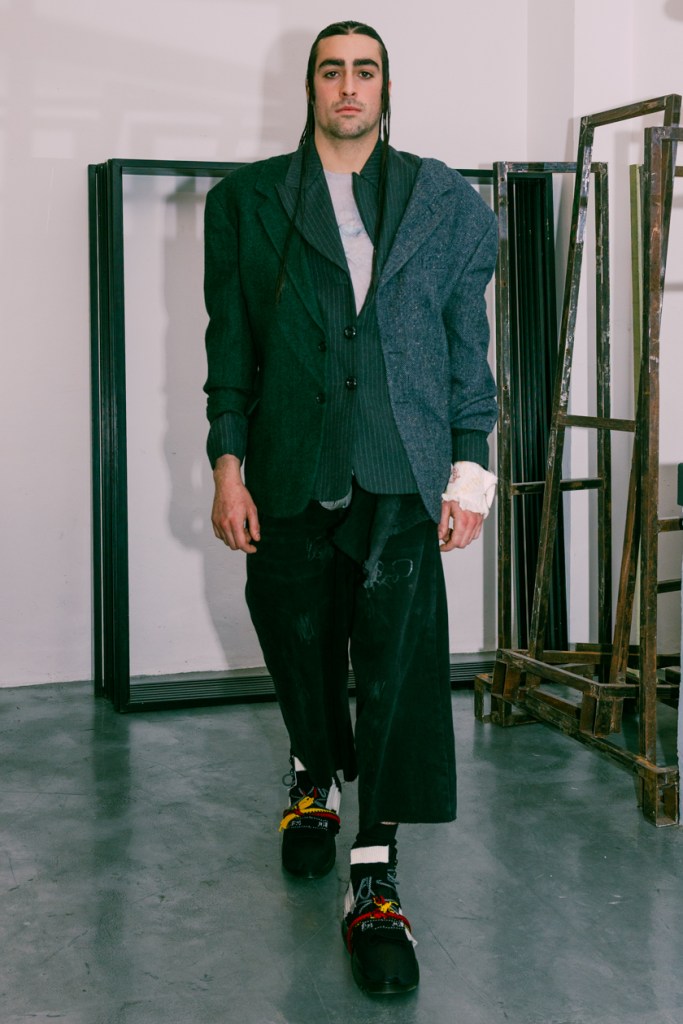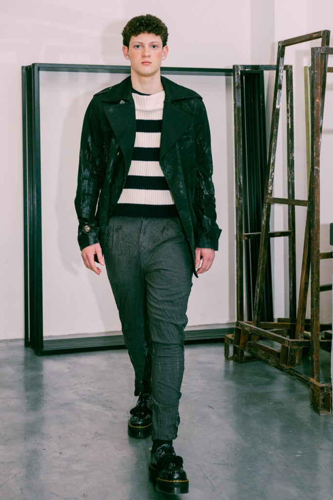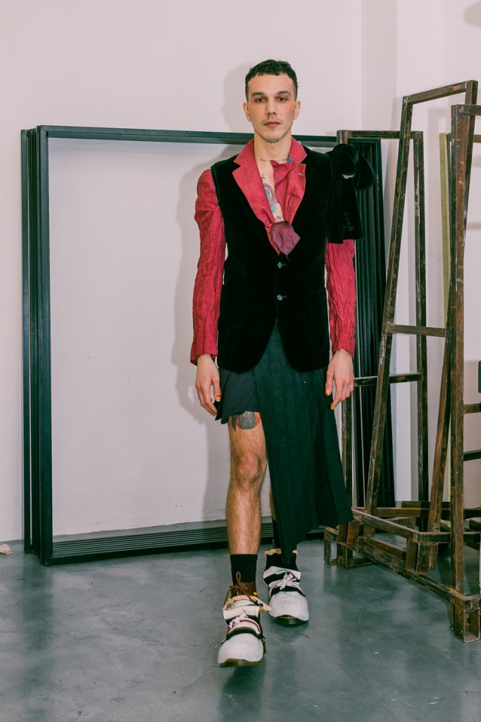 Historically, fashion has largely ignored the beauty of diverse body shapes and the personal stories that can accompany personal style. In this latest offering, Simon Cracker turns the spotlight on inclusivity, reimagining traditional designs by celebrating individuality. His collection acts as a refreshing critique of classic men’s fashion, questioning and deconstructing established norms to align with an identity that values freedom, authenticity, and a disregard for imposed rules. This approach opens a dialogue that is not only about aesthetics but also about identity and self-expression.