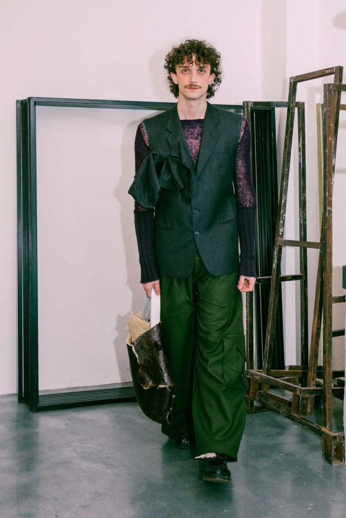 As the show commenced, suddenly it became abundantly clear that today’s society is rife with distractions, where everyone feels the obligation to speak while rarely pausing to listen. The cacophony of voices and images that bombard our senses often leads us to think of responses before fully digesting questions posed by others. In this environment, Simon Cracker invites us to stop, breathe, and engage meaningfully with those around us. The essence of his collection is a reminder of the importance of truly listening—not just to the garments but to the stories they tell about the wearers.