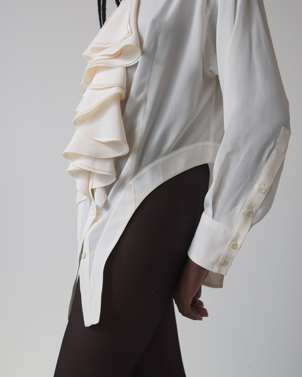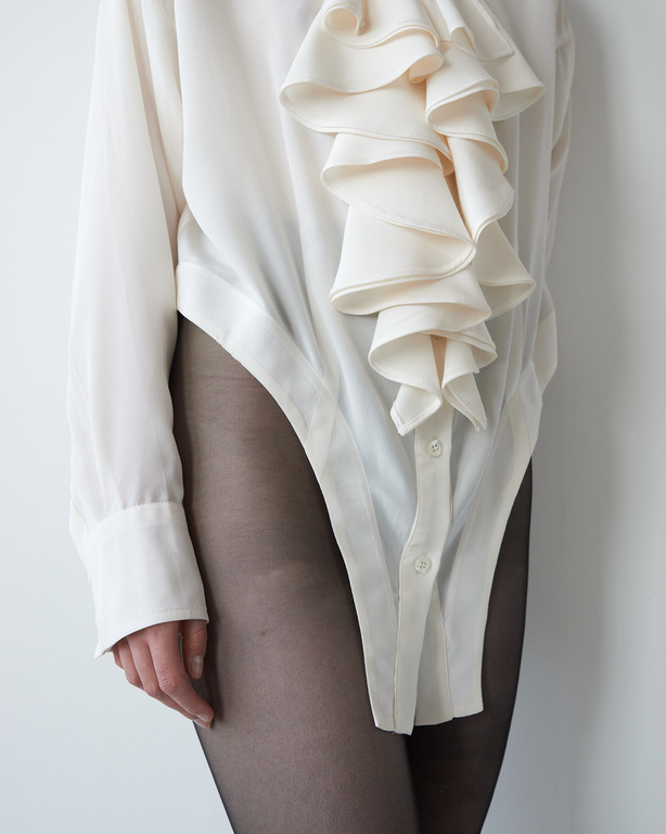 Navigating the intersection of tradition and experimentation is central to our creative process. The balance we strive for is between innovative form and rigorous craftsmanship. Our designs often start with moulage, allowing us to intuitively build structures in three dimensions. This method frees our designs from predetermined constraints, letting the garments reveal themselves organically.
