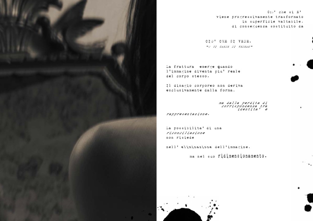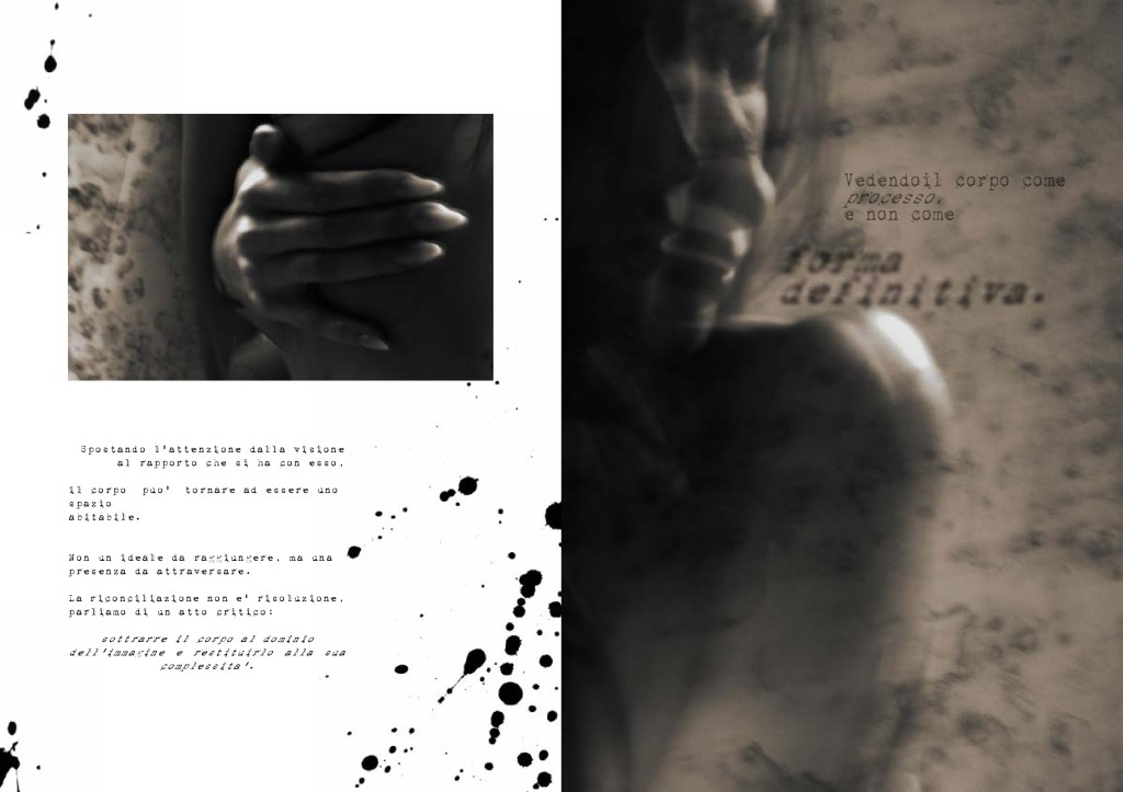 A visual story that explores the complex and often toxic relationship between body and image in contemporary society, where self-recognition increasingly relies on a filtered and judgmental visual representation. An intimate journey that moves from a fracture with the own reflection to a form of reconnection and acceptance of the body. The photographic series is built around a mirror, which serves as a surface for visual reflection.