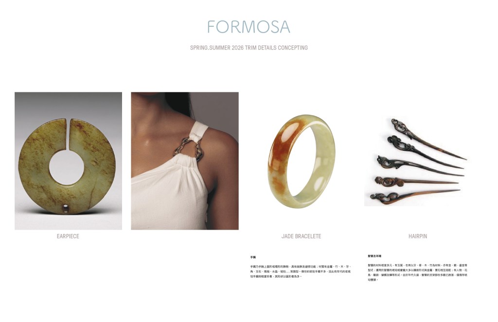 Stephanie’s Spring/Summer 2026 collection, “fleu, FORMOSA,” draws inspiration from her Taiwanese heritage, seamlessly integrating the lush landscapes and rich cultural traditions of her homeland into her designs. Today, more than ever, there is an essential need for designers like Stephanie, who infuse their work with a sense of tranquility and purpose. The collection exemplifies this ethos, featuring captivating pieces that marry elegance with an understated boldness. Notable elements within this collection include intricate accessories crafted from green jade, often referred to as the “stone of heaven.” This gemstone not only symbolizes wisdom, purity, and longevity, but it also serves as a spiritual bridge between the living and the spirit world—historically used in imperial tombs to safeguard the deceased in the afterlife. This thoughtful incorporation of jade highlights Stephanie’s dedication to meaningful design, transforming simple fashion statements into profound cultural expressions. Additionally, the collection showcases meticulously crafted artisanal hairpins, adding a unique touch to each ensemble.