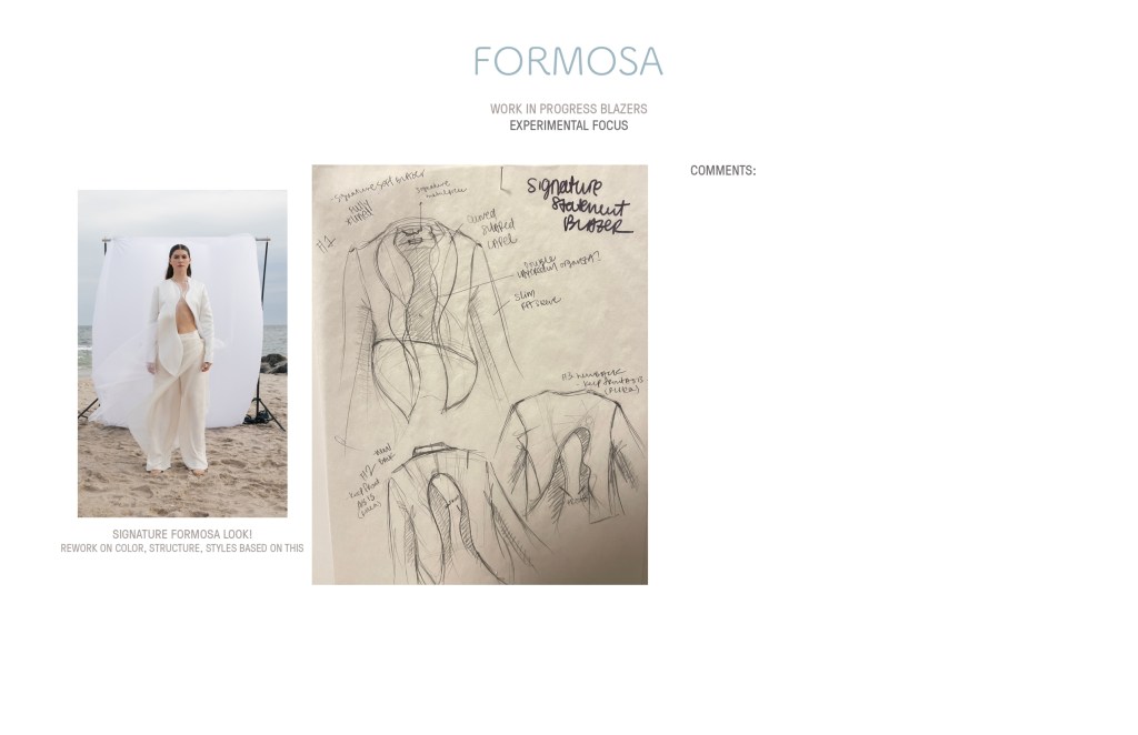 A woman who is selective about what to include in her closet for daily wear is the type of clientele we are targeting at FORMOSA. I believe that the way we portray femininity in this current collection—and in upcoming ones at FORMOSA—will focus not only on fit but also on uniquely tailored designs with significant fluid lines that make the garments bold and recognizable, yet not too loud.